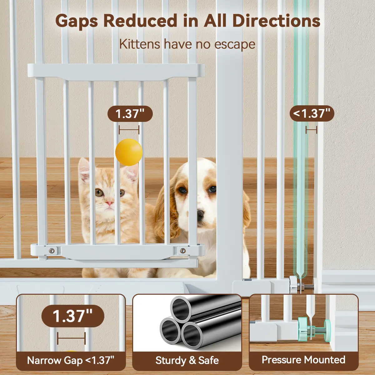 ·Safety: Ultra-narrow gap of 1.37" prevents pets and toddlers from escaping.