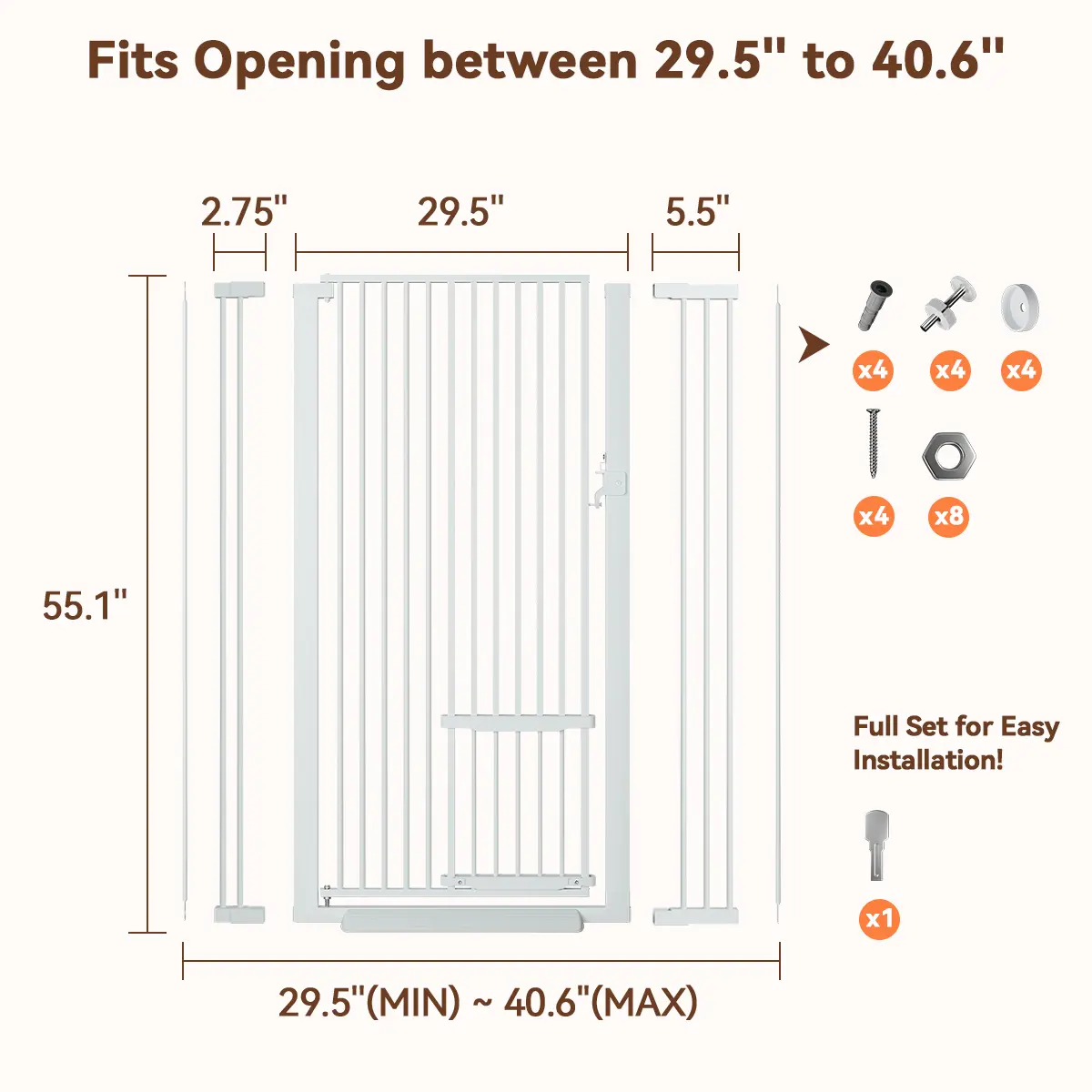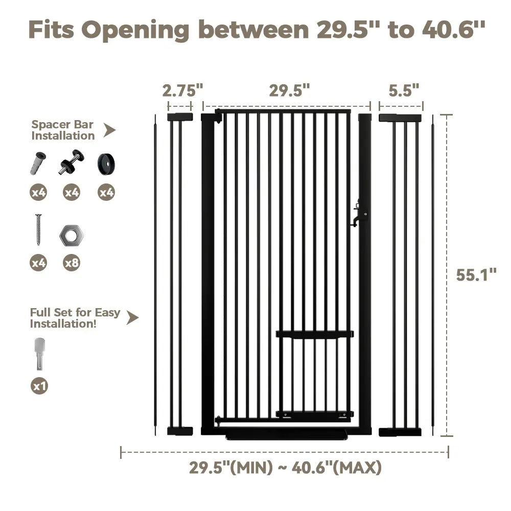 ·Height: 55.1" tall, fits openings 29.5" to 40.6" wide.
