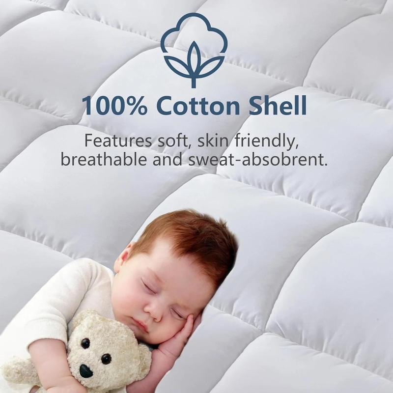 The quilted design keeps the filling evenly distributed, preventing lumps and ensuring long-lasting durability. Its 360° elastic skirt provides a secure, snug fit around your mattress, suitable for depths from 8 to 21 inches (20–53 cm). Whether you want to rejuvenate an old mattress, add an extra layer of comfort, or protect your bed, this topper is the perfect choice.