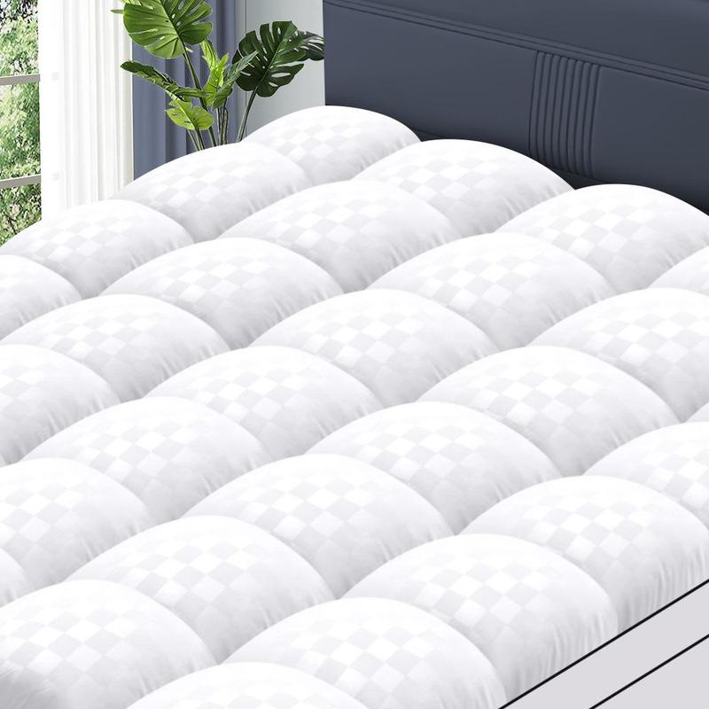 ·Premium Surface Material - The mattress topper adopted microfiber fabric made, which is breathable and skin-friendly, providing you superior softness and comfort. The surface features square jacquard design, both beautiful and unique. And the mattress pad is made of 400TC combed fiber, is durable, less likely to tear even with frequent washing