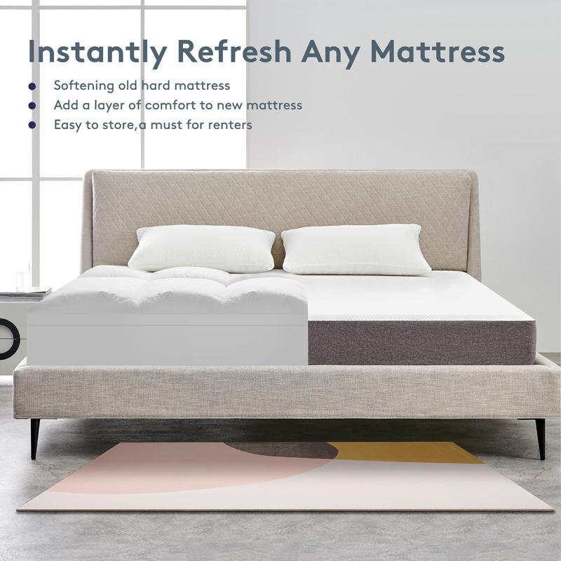 ·Box Quilted & Filling - Our mattress topper double filled with 5D & 7D snow down alternative filling, extreme soft, fluffy and warm. Unique box quilted design, which allows the padding to be fixed in each box, does not shift easily