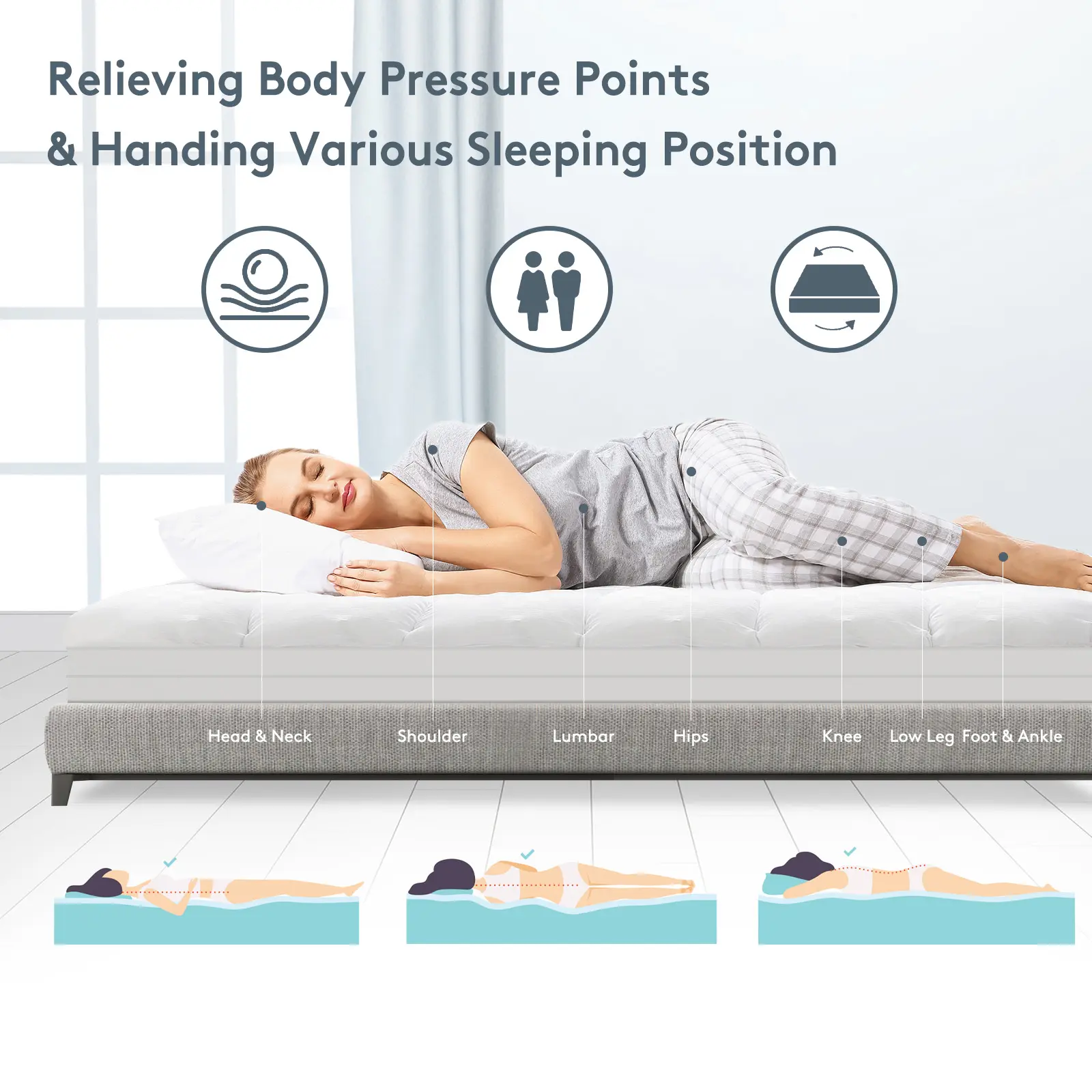 Relieve Back Pain - The mattress pad provides you optimum thickness, achieves a smart balance between softness and cushioning. When you sleep on our mattress pad cover, it can gently cushions the pressure points on your back, lower back and hips to help relieve back pain, providing a ergonomic support and comfort for your sleep