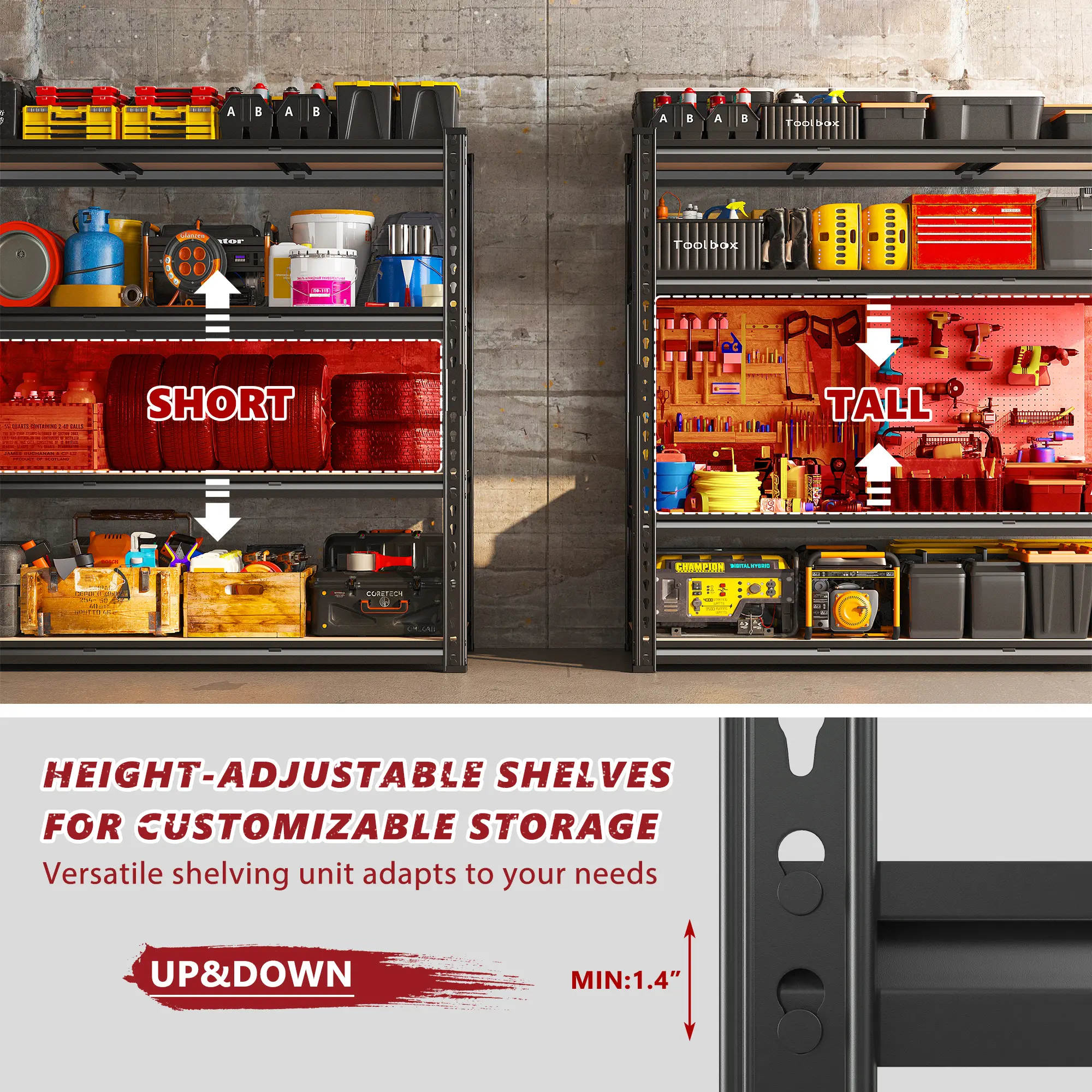 If any parts are missing or assembly issues arise, contact us immediately. The metal garage shelving is perfect for gift-giving or housewarming. For any questions, our customer service is here to help. Enjoy peace of mind with professional support.