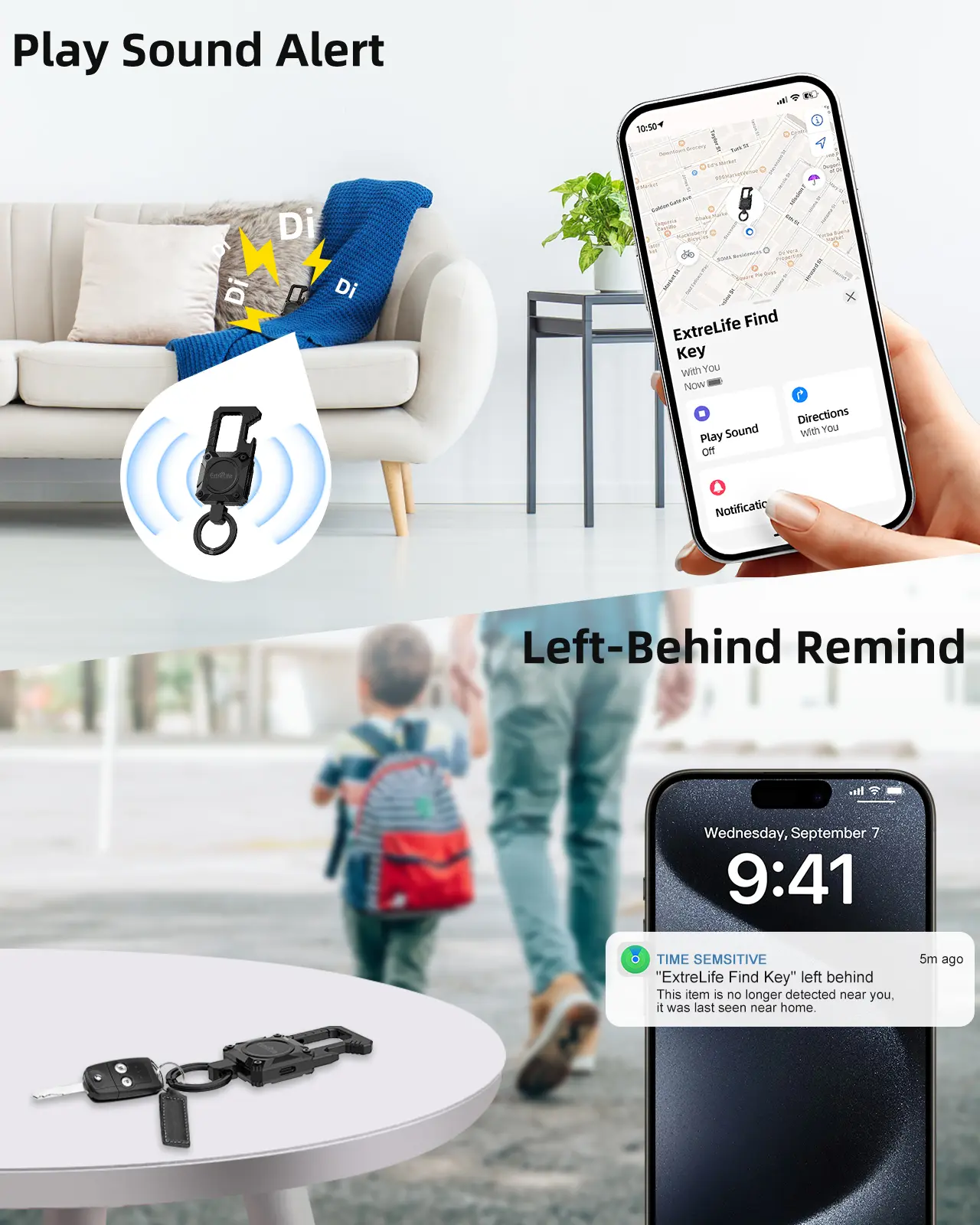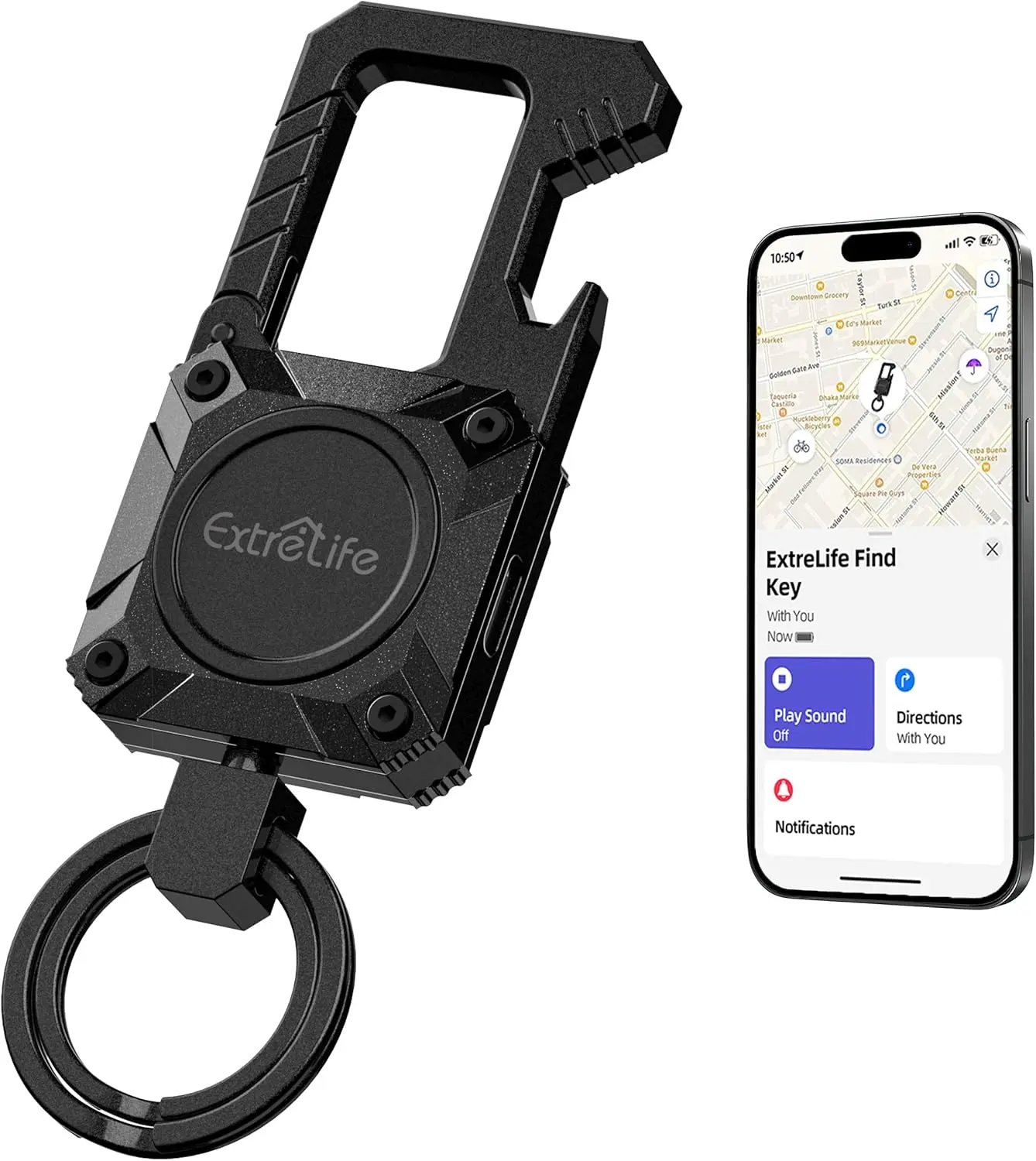 ·【Works with Apple Find My】 For iPhone owners,the Extrelife's latest Keychain is for tracking and locating your Key and items. With Apple’s Find My network has by far the largest number of devices, makes it more likely that you’ll recover what you’ve misplaced. It comes with 2 key rings and carabiner, so just connect and go.