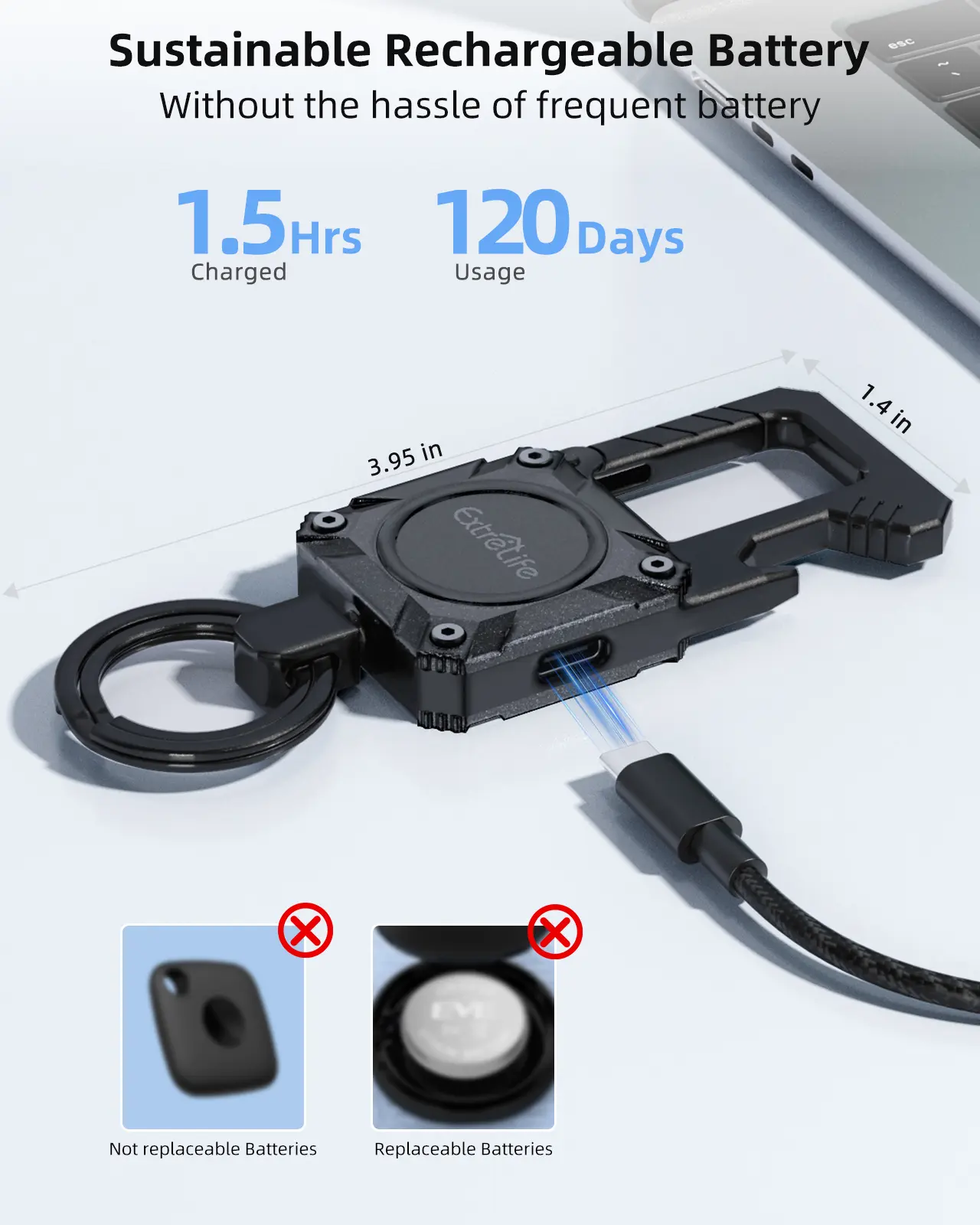 ·【Durability and Rechargeable Battery】It’s made from rugged stainless steel and metal cases, offers excellent protection against drops and scratches. The Battery of the keychain is rechargeable, last up to 4 Months on a single charge. Comparison with trackers that don’t have replaceable batteries, which means you don't have to replace the entire unit whenever it dies. It saves costs in the long term and makes the tracker sustainable.