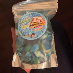 Perfect for sour lovers who like a little thrill with their snack, this mix includes variety-packed gummy shapes—bottles, worms, belts, and more—all drenched in that eye-watering, tongue-tingling blue razz flavor.