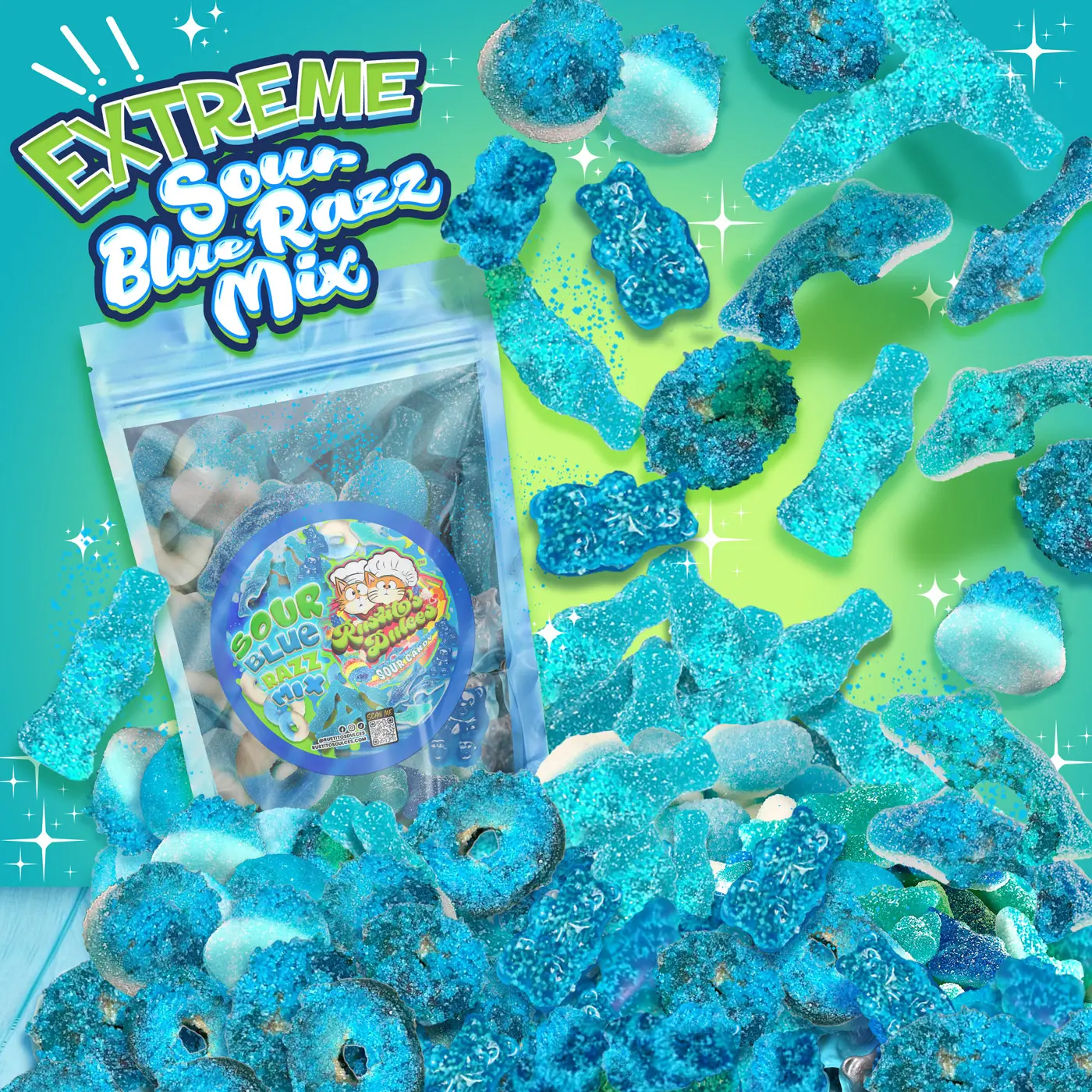 Also try our original Sour Blue Razz Gummy Mix for your favorite viral mix of blue razz gummies without the added extreme sour flavor powder.