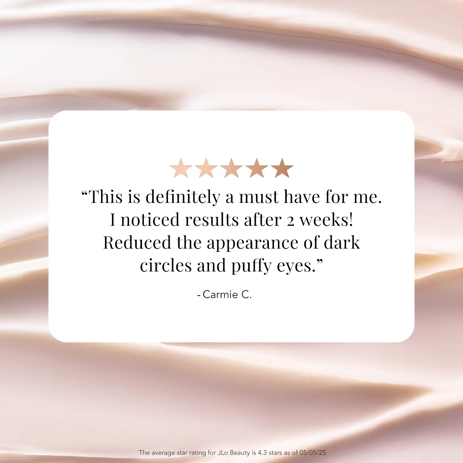 Mask dark circles, visibly reduce fine lines and wrinkles, boost luminosity and support elasticity. So fierce. So JLo. Did we mention, it's non-comedogenic*?