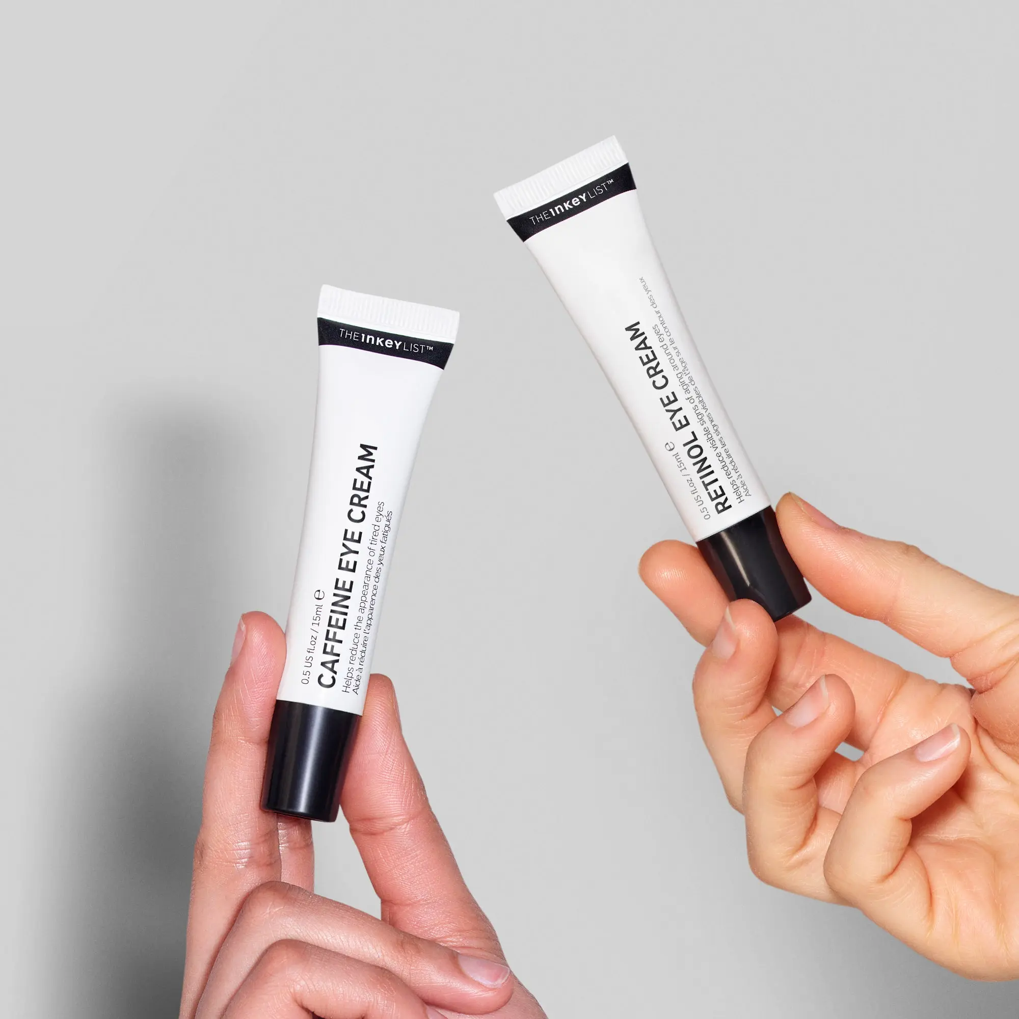 I like both eye creams. They feel cool and refreshing. I use the caffeine one in the morning and the retinol one before bed.