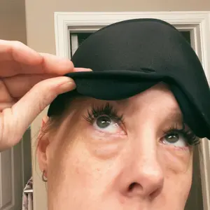 It definitely Blocks out all the light And it’s very comfortable. It also doesn’t squish down on my natural eyelashes, but I want to grow them out so I’m curious to see how it will work then. But it’s definitely not as tall as they make it seem in the picture