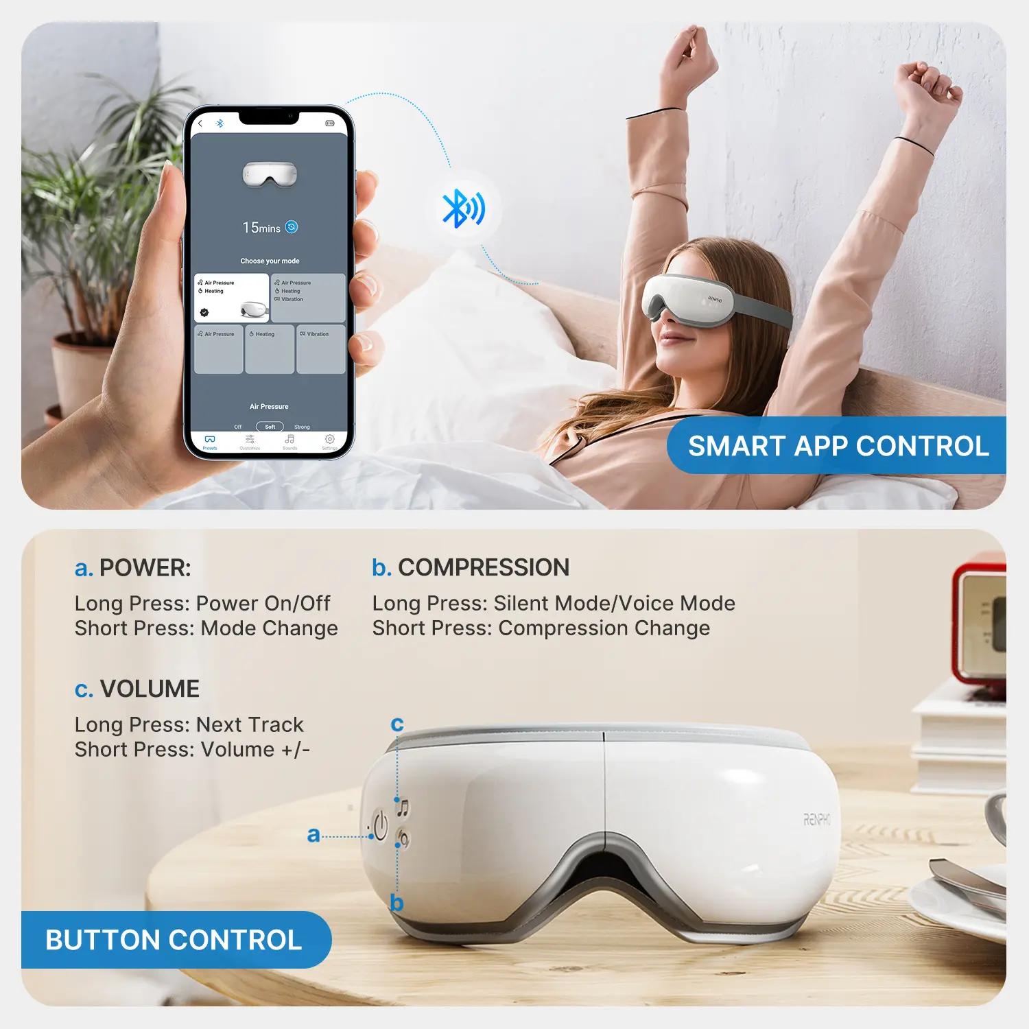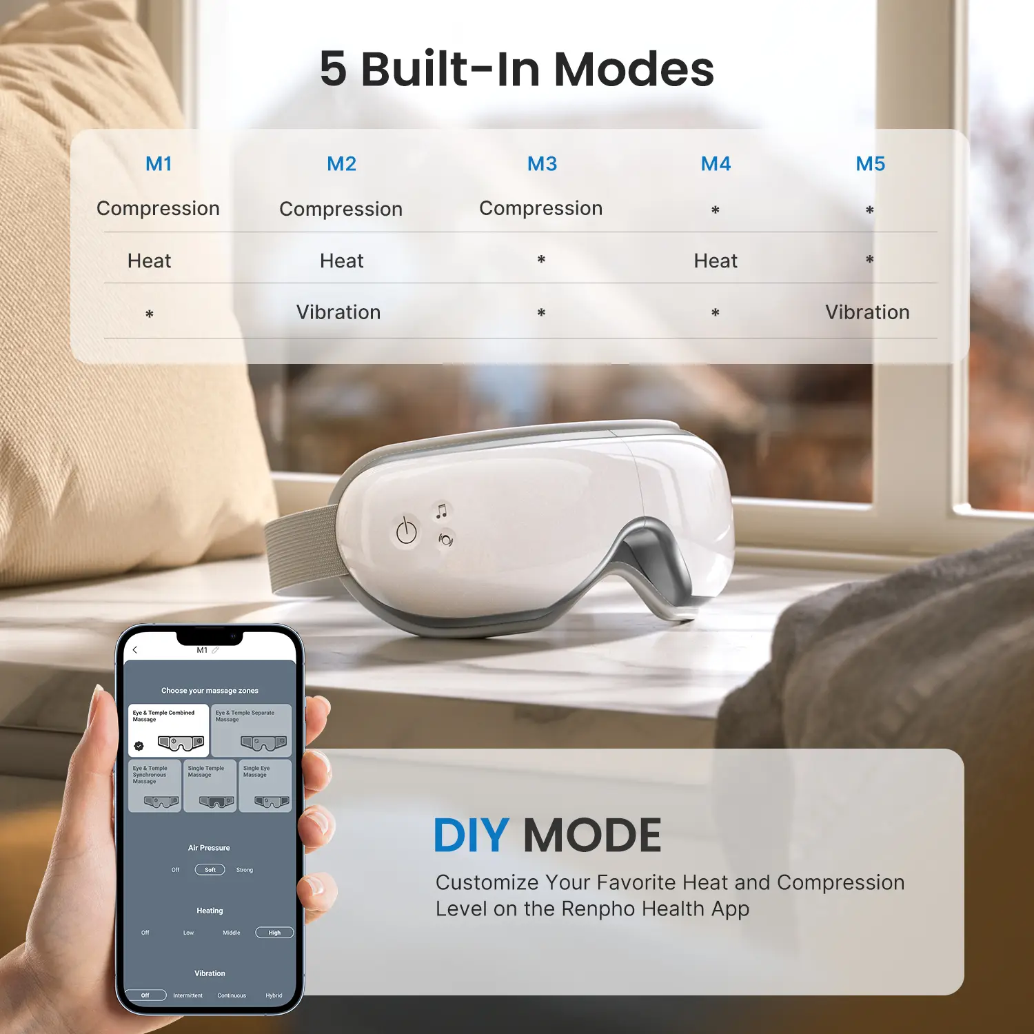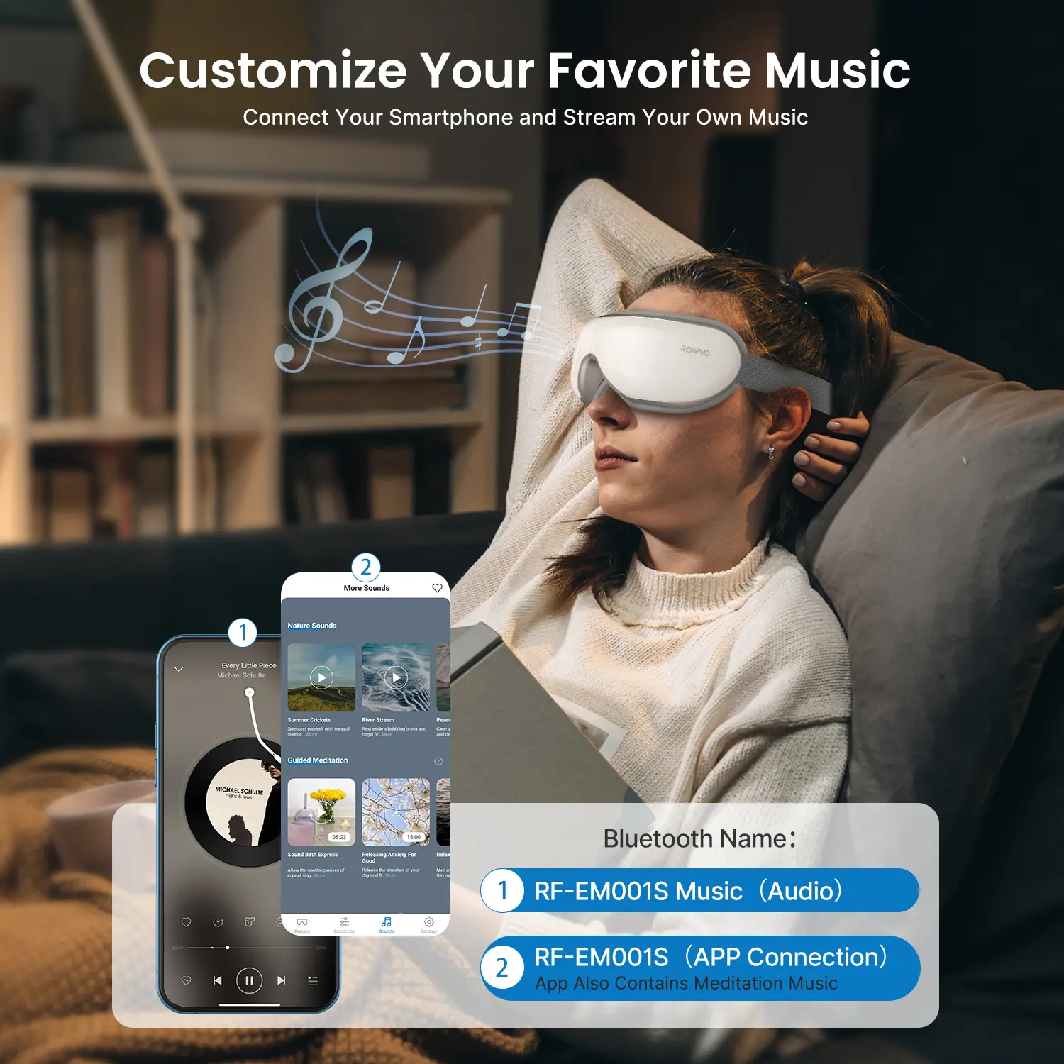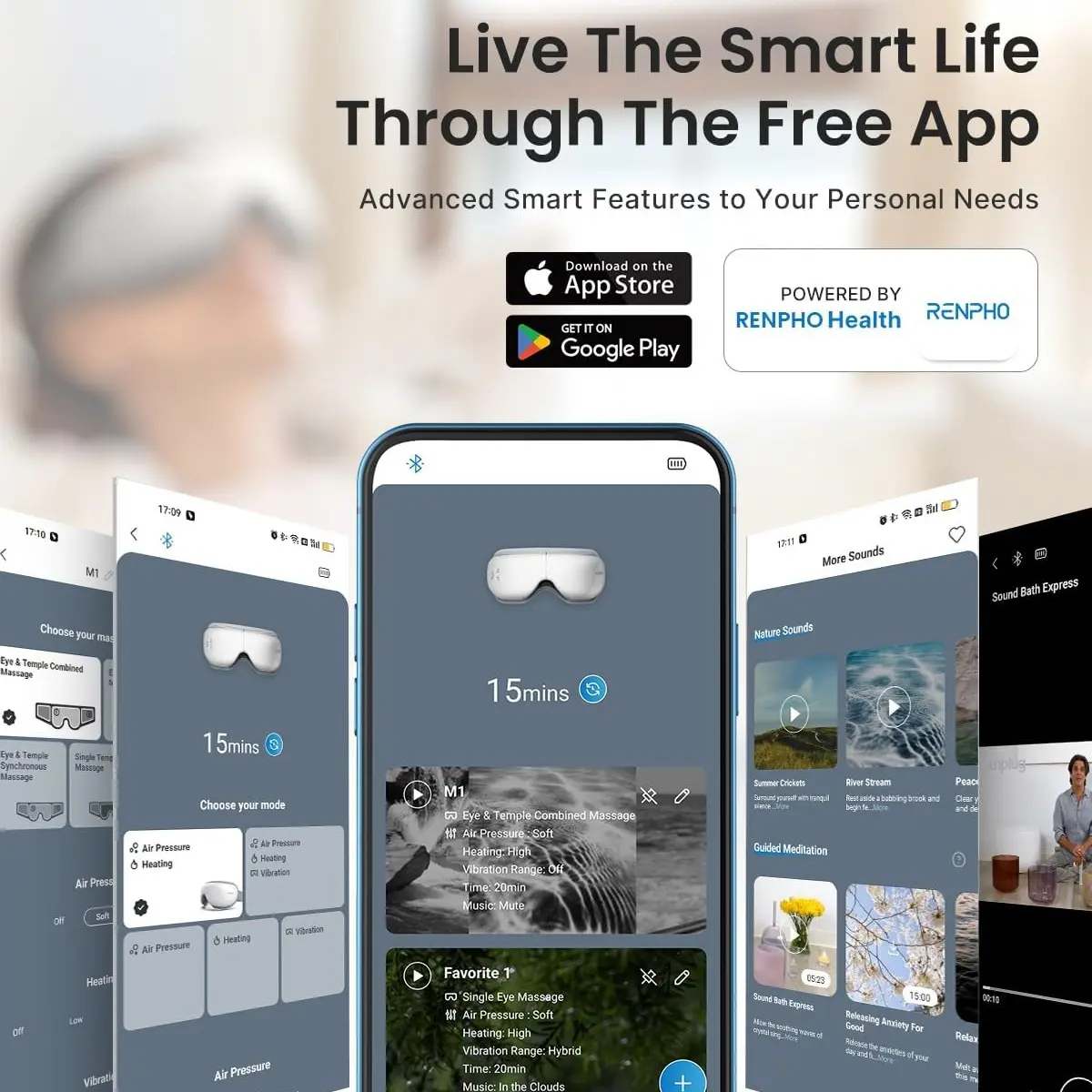 Massive meditation guide MV & white noise,give you more fun with this RENPHO smart eye massager