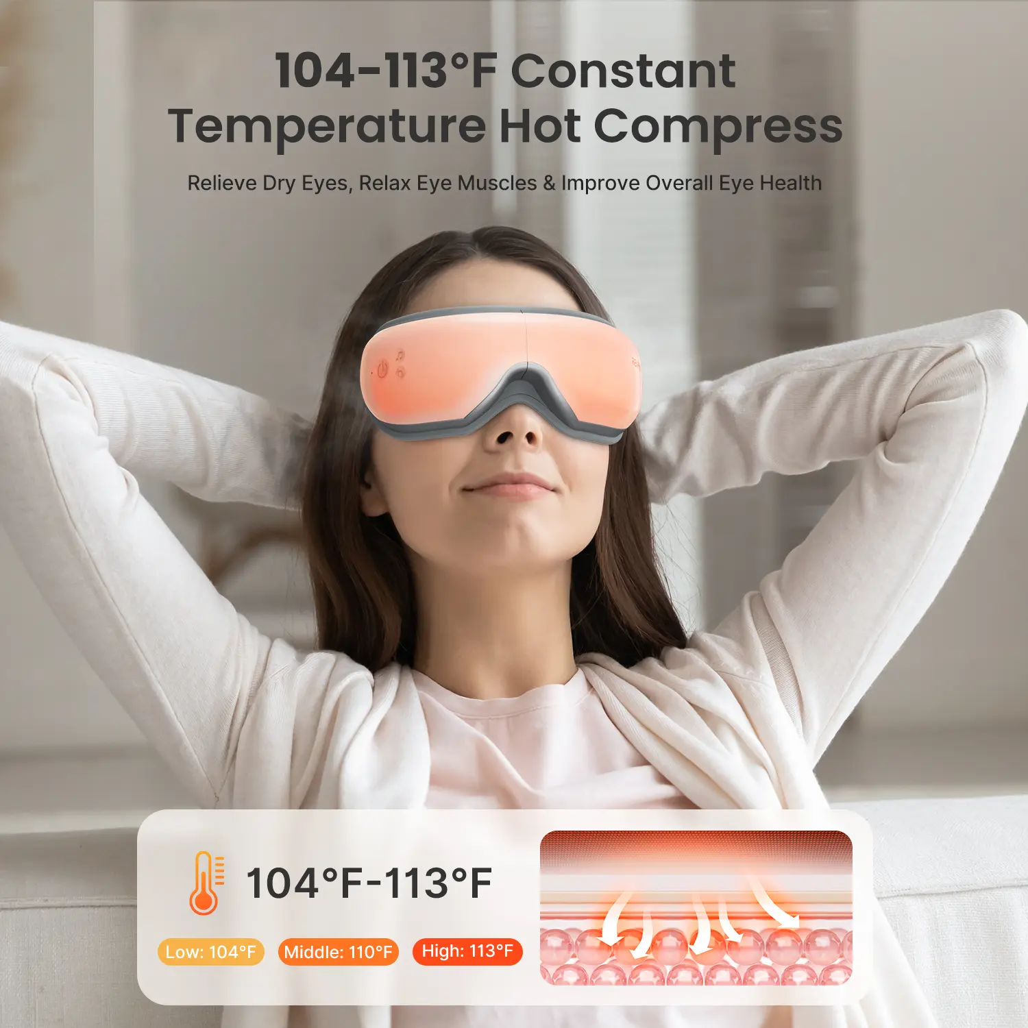 Large-area heating coverage, multiple temperature providing customers comfortable eys massage with heat