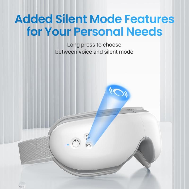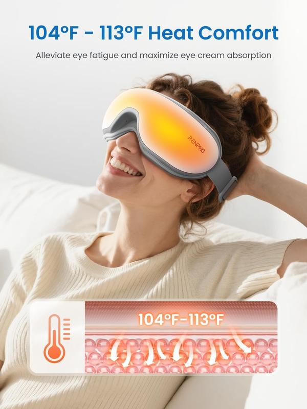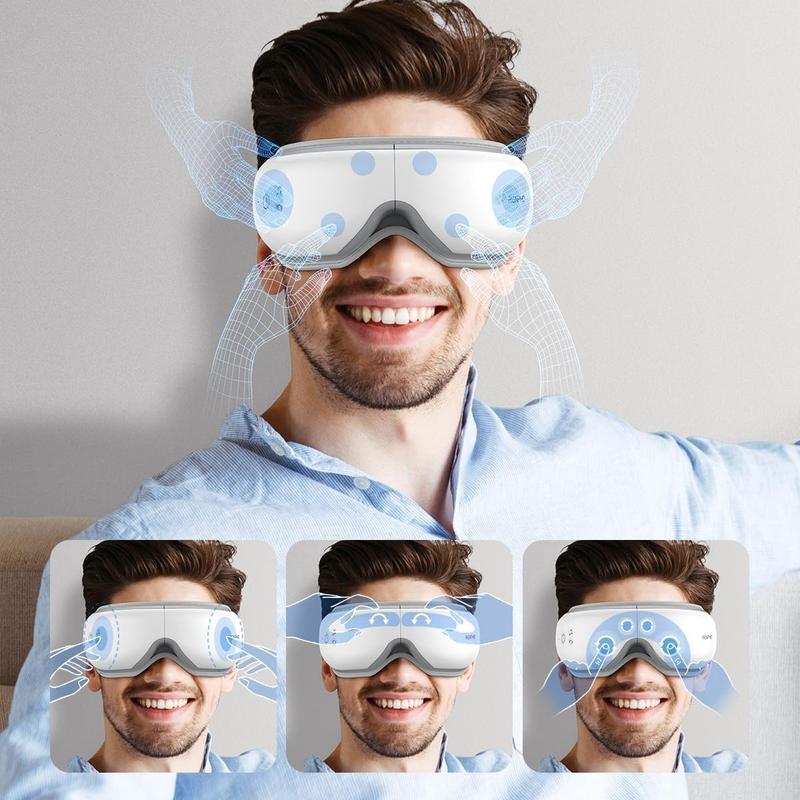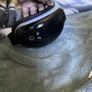 I absolutely love this eye massager. It gets warm it plays music or I can bluetooth to it. Has a remote. I just wish it had a top strap to help hold it up.
