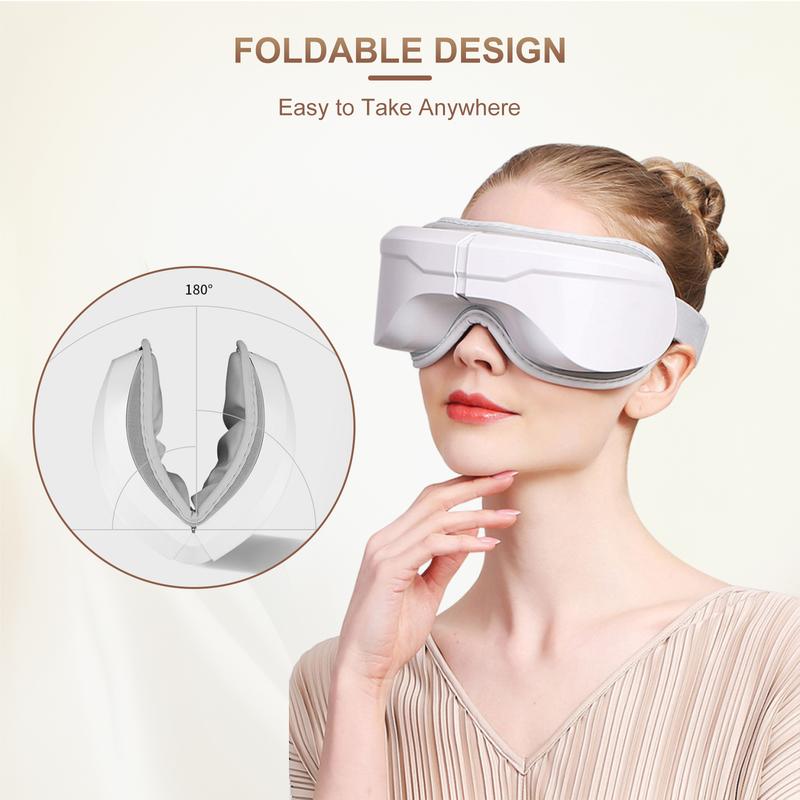 ·180° Foldable, Size Adjustable: The electric eye massager can be folded into a smaller one, so you can take it to the office, airplane, traveling. Besides, the headband can be easily adjusted in length and suitable for most faces. If you feel too tight or too loose, please adjust your headband to find the right length.