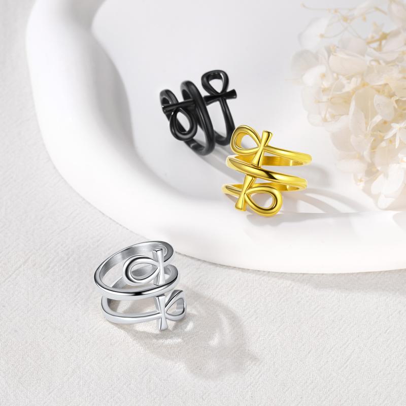 FaithHeart Eye of Horus Layered Ring Stainless Steel Egypt Protection Rings
