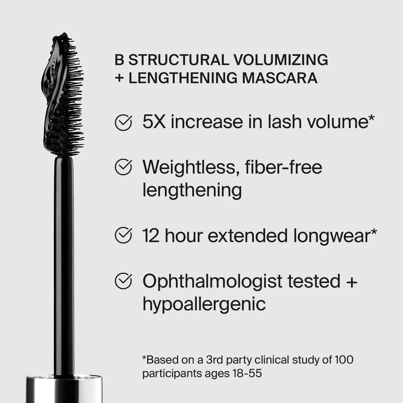 ·Structural Volumizing + Lengthening Mascara: The world’s first vegan B-Silk™ powered formula. Designed to deliver major lash volume and length with a fortifying coat. Strengthens with continued use based on a 3rd party clinical study of 100 participants ages 18-55.