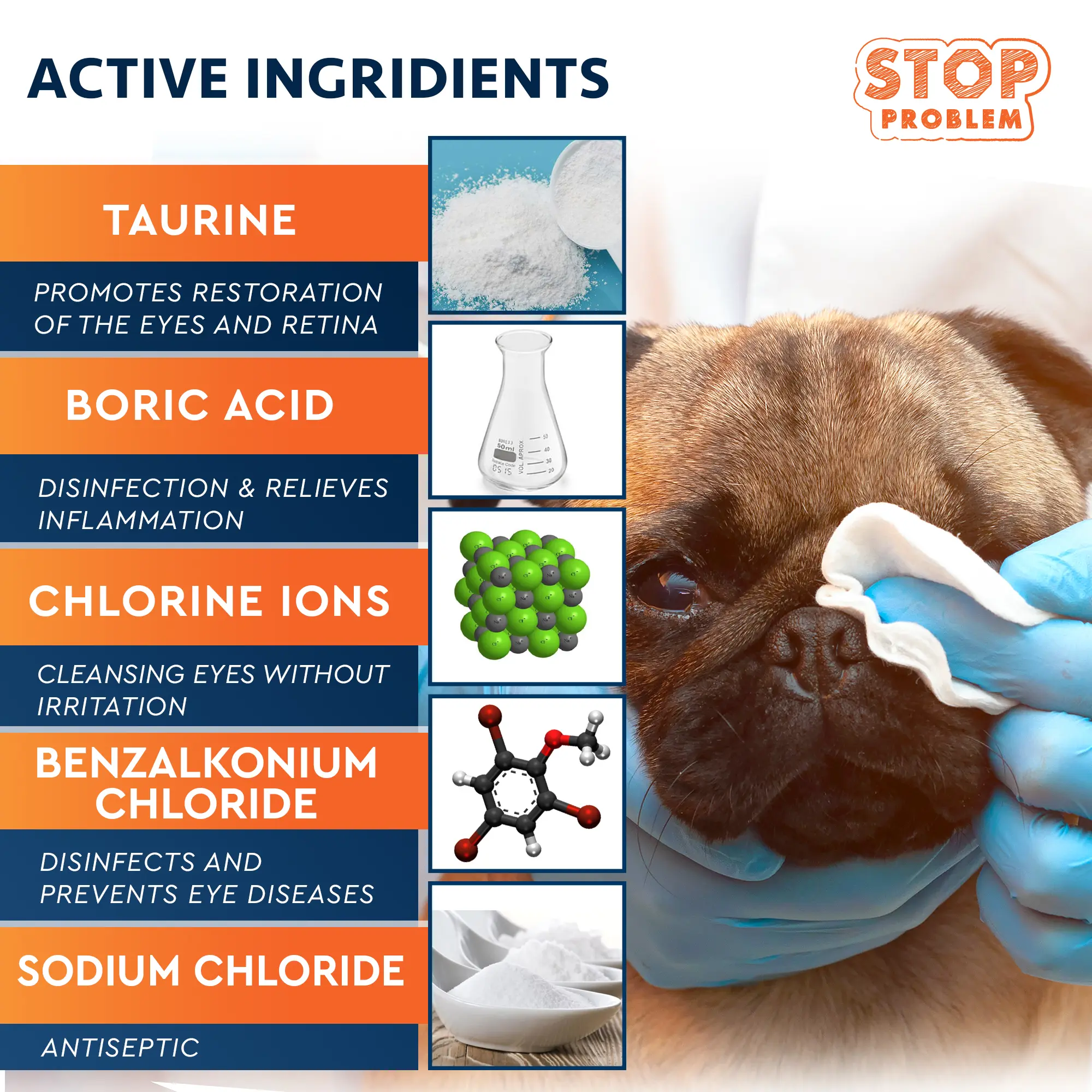 PROMOTES HEALING & SKIN SOFTENING: Silver ions and panthenol in this cleaner help heal wounds and soften skin. Boric acid reduces eyelid inflammation, while taurine supports eye restoration. This nourishing solution preserves eye health, ensuring clear, vibrant eyes and optimal skin condition for your pet.