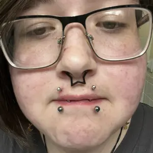 SUPERRR CUTE. i get compliments on it all the time. i definitely recommend getting it, it’s the perfect size for a vertical labret. plus it’s titanium, not like the other poor quality made jewelry.