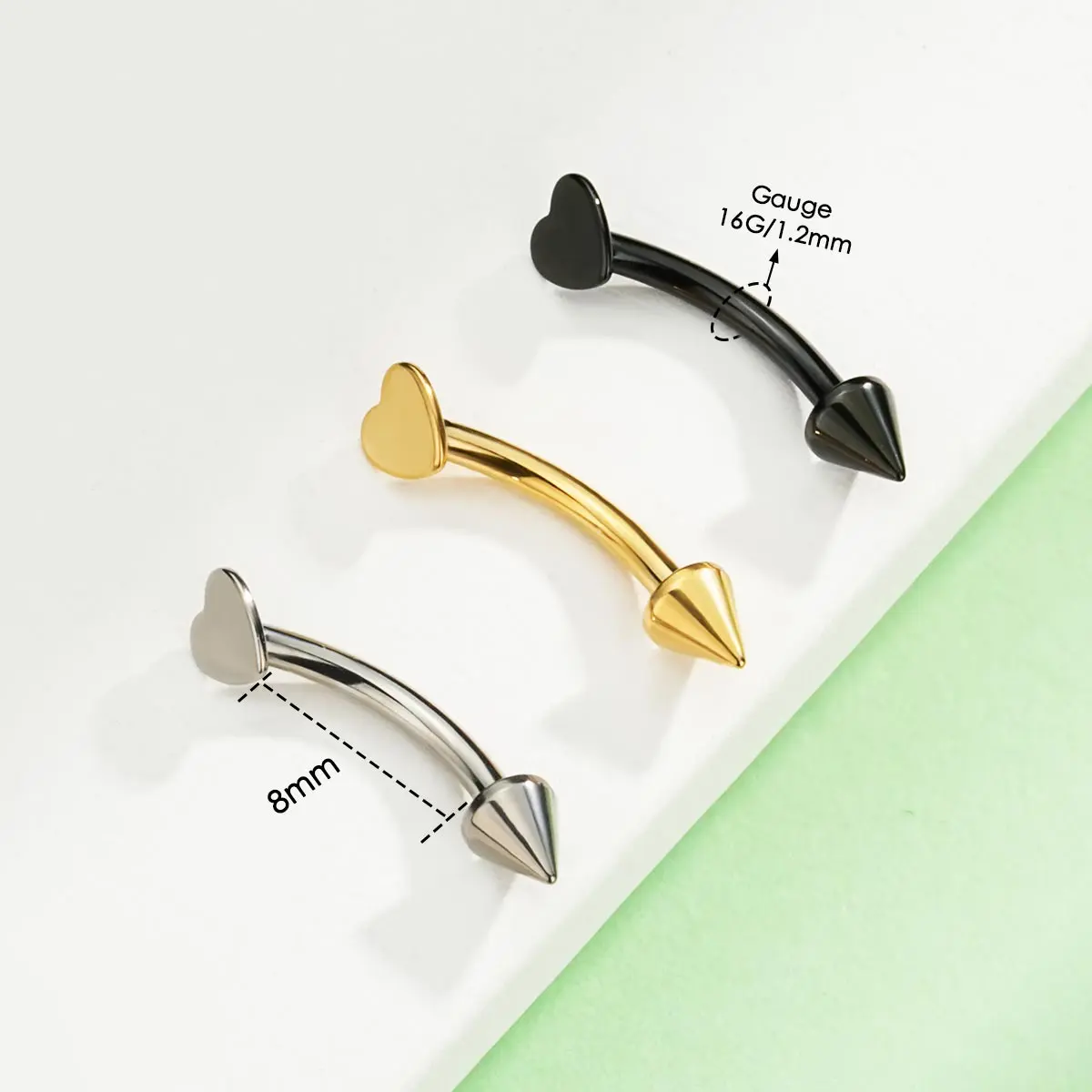 Oufer 16G Titanium Flat Heart & Spike Eyebrow Rook Ring Vertical Labret Snake Bite in Gold Black Silver