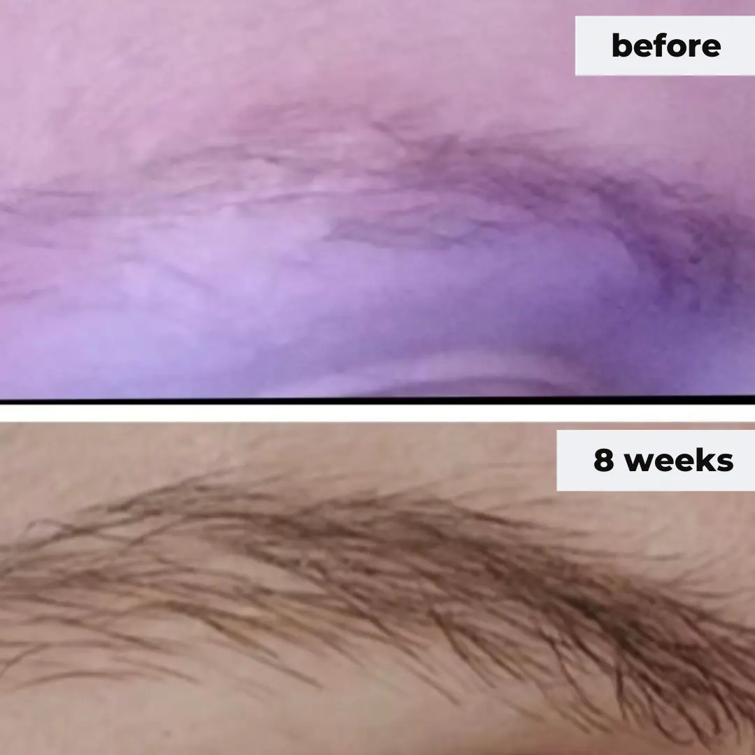 I have very sparse eyebrows due to both over-plucking and hair loss due to menopausal state. I have been using this product for only 2 weeks & already see signs of hair growth. Very happy with product. Can't wait to see what the eyelash serum does.