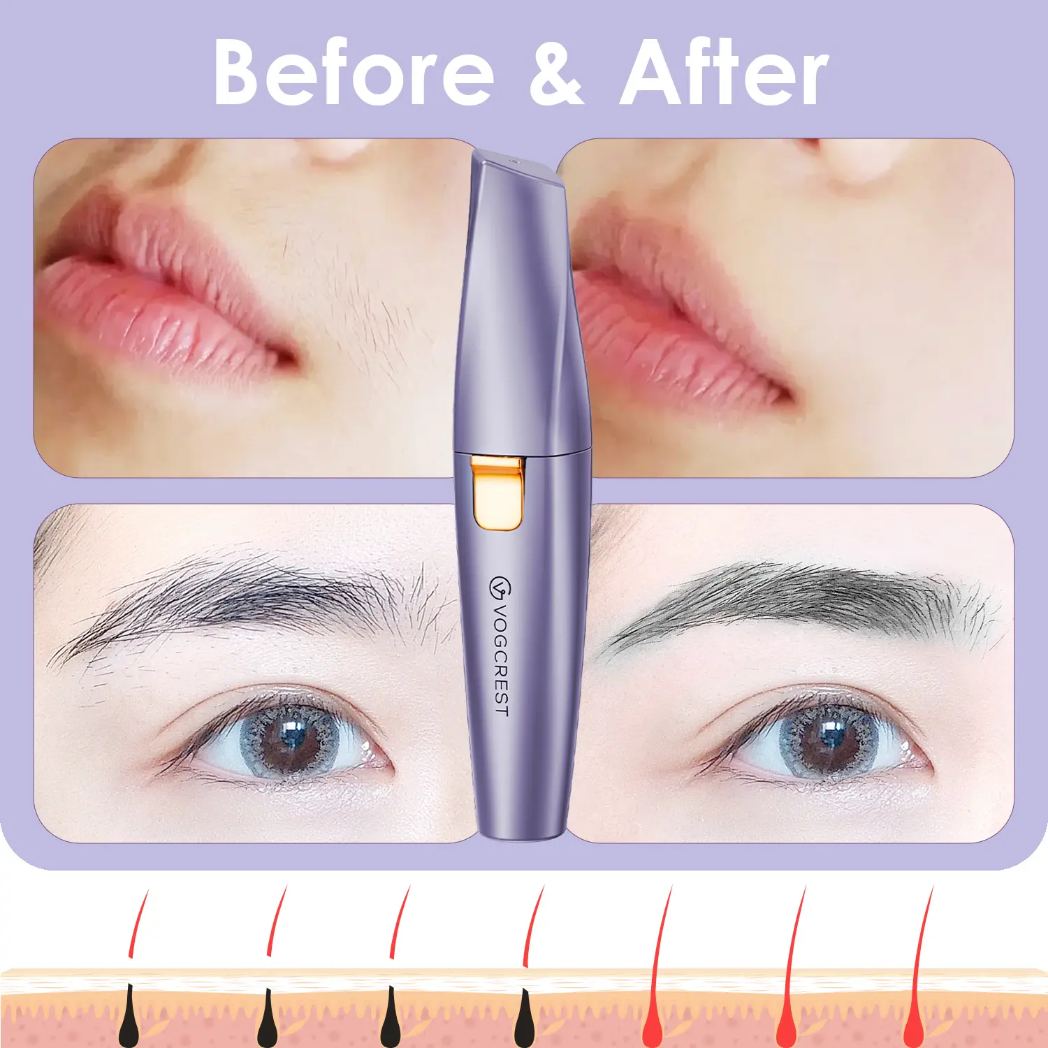 SOFT & COMFORTABLE: This 2-in-1 womenâs hair remover is perfect for daily touch-ups, leaving skin smooth and hair-free. Designed for eyebrows, lips, cheeks, chin, and neck, it gently removes peach fuzz and fine hair with smooth, circular motionsâno discomfort involved.