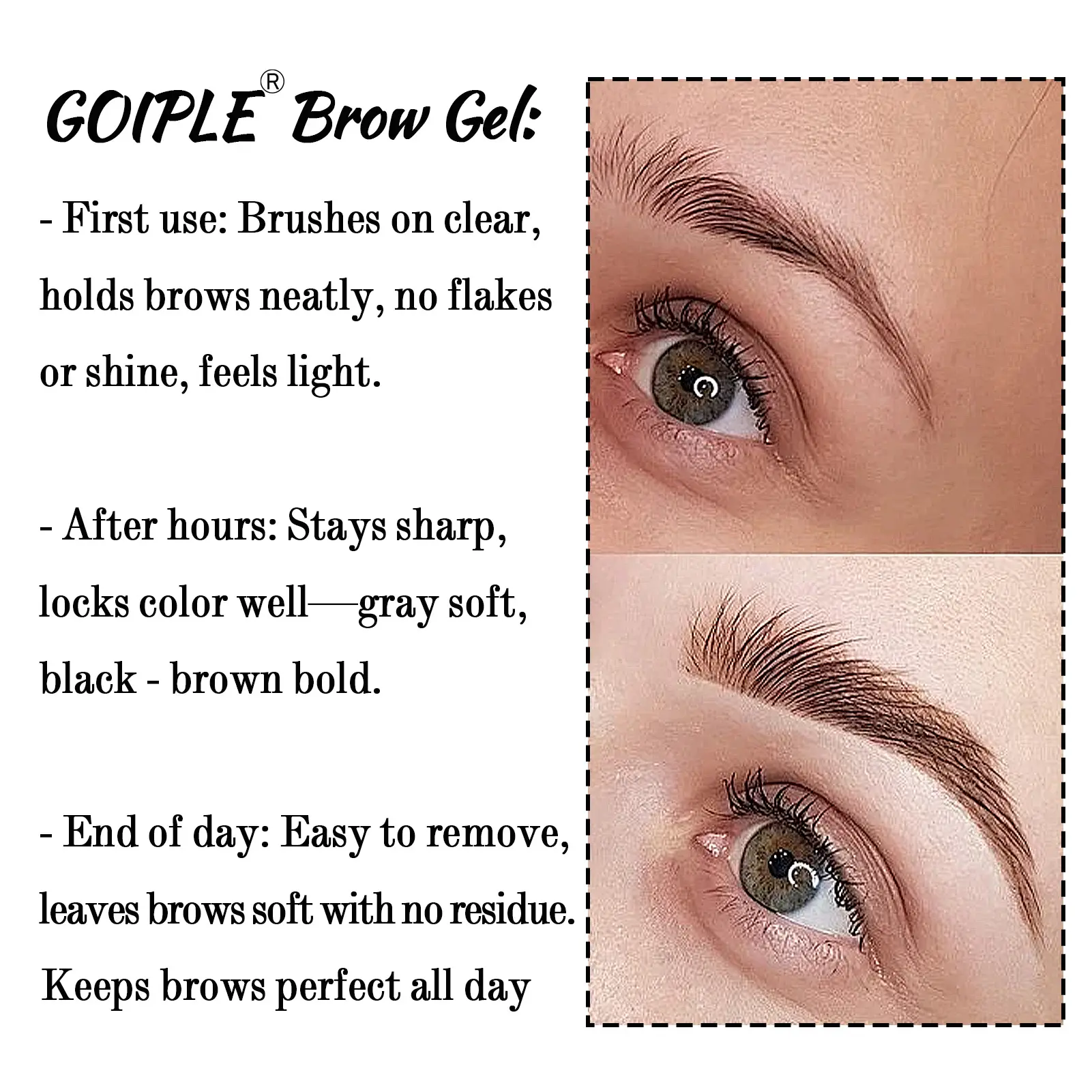 Long-lasting hold: GOIPLE eyebrow wax has strong staying power, keeping your brows in perfect shape from morning to night, regardless of sweat, rain, or daily friction. Whether it's a busy workday or an energetic outdoor activity, it can firmly lock your brow shape.