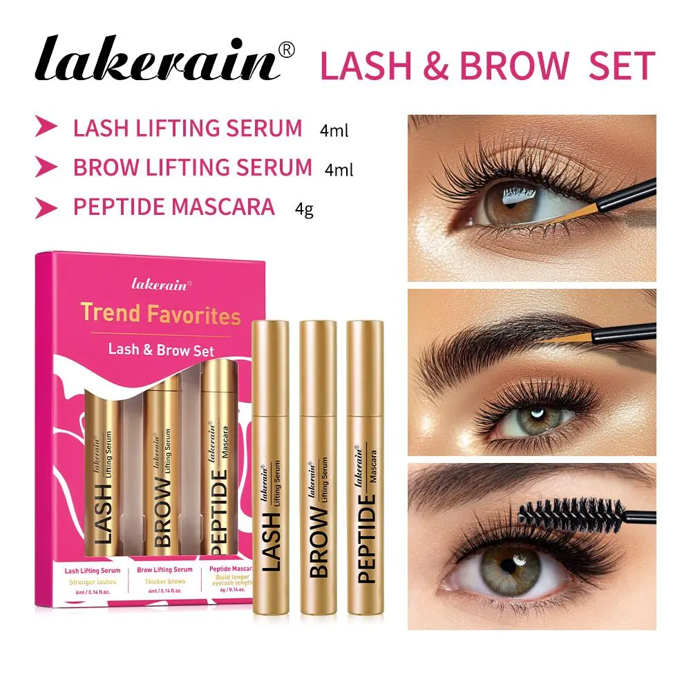 Enhanced Eyelash & Brow Kit, Mini Liquid Enhancer Set with Nourishing Lash Lifting Serum + Lengthening Brow Lifting Serum+ Long-Lasting Peptide Mascara, Natural Extension, Eye Makeup