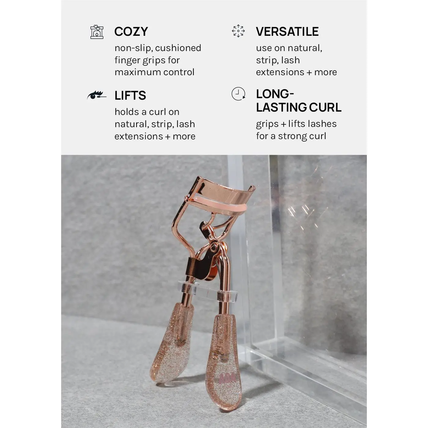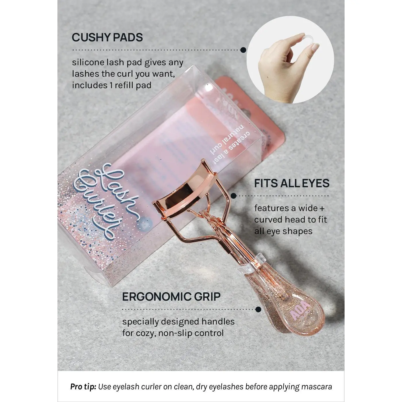 this curler is much easier to hold and curl compared to other brands i’ve tried in the past. i also appreciate that the handle is bigger, allowing more control, & came with extra supplies to curl my lashes.