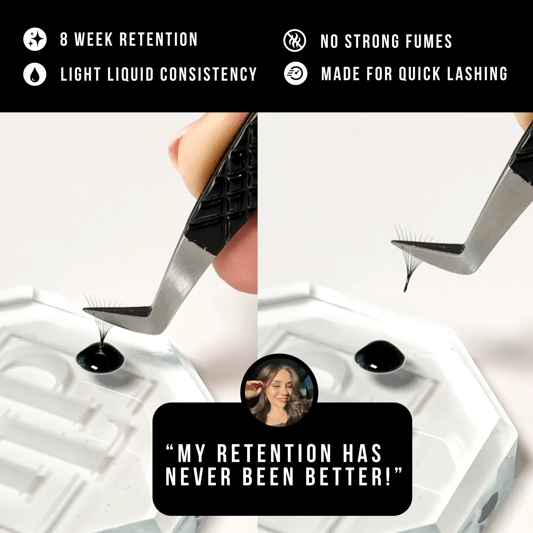 Even some of my most difficult clients have the best retention with this glue! It absolutely does the job well and fast! It is so convenient to have this in your lash kit!
