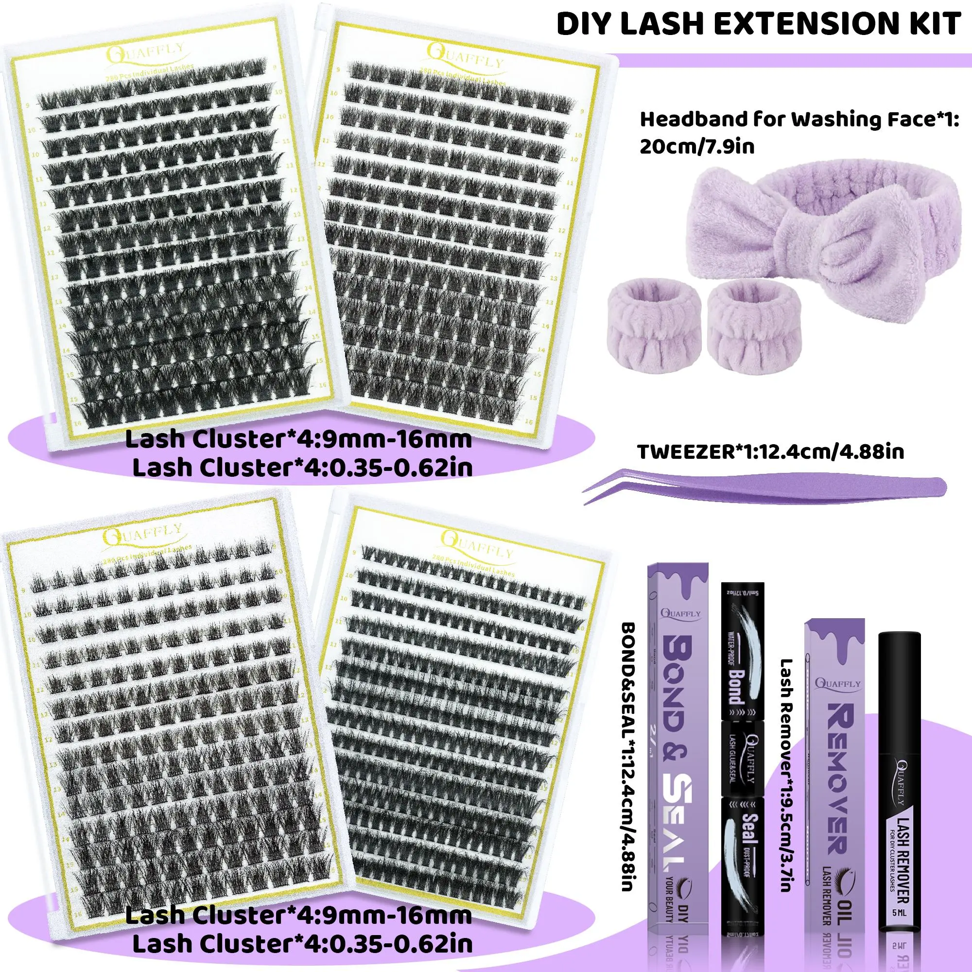 so good quality and comes with four different types of lashes seal,bond, teasers,two rise bands and head band