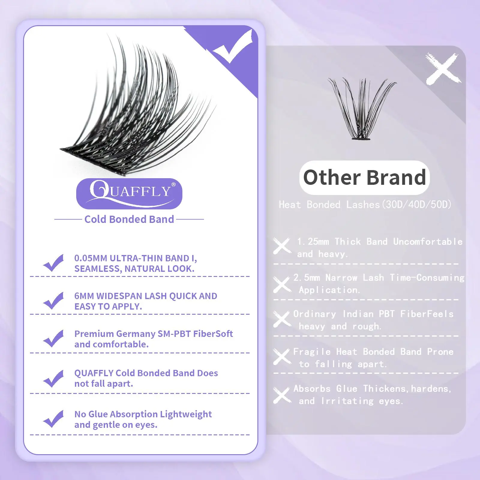 These are the worst clusters ive tried. The split when i lift them up slowly. They split when i apply the glue and when i put them on. I have more than 3 years using clusters so now im a pro. I want a refund! They are useless