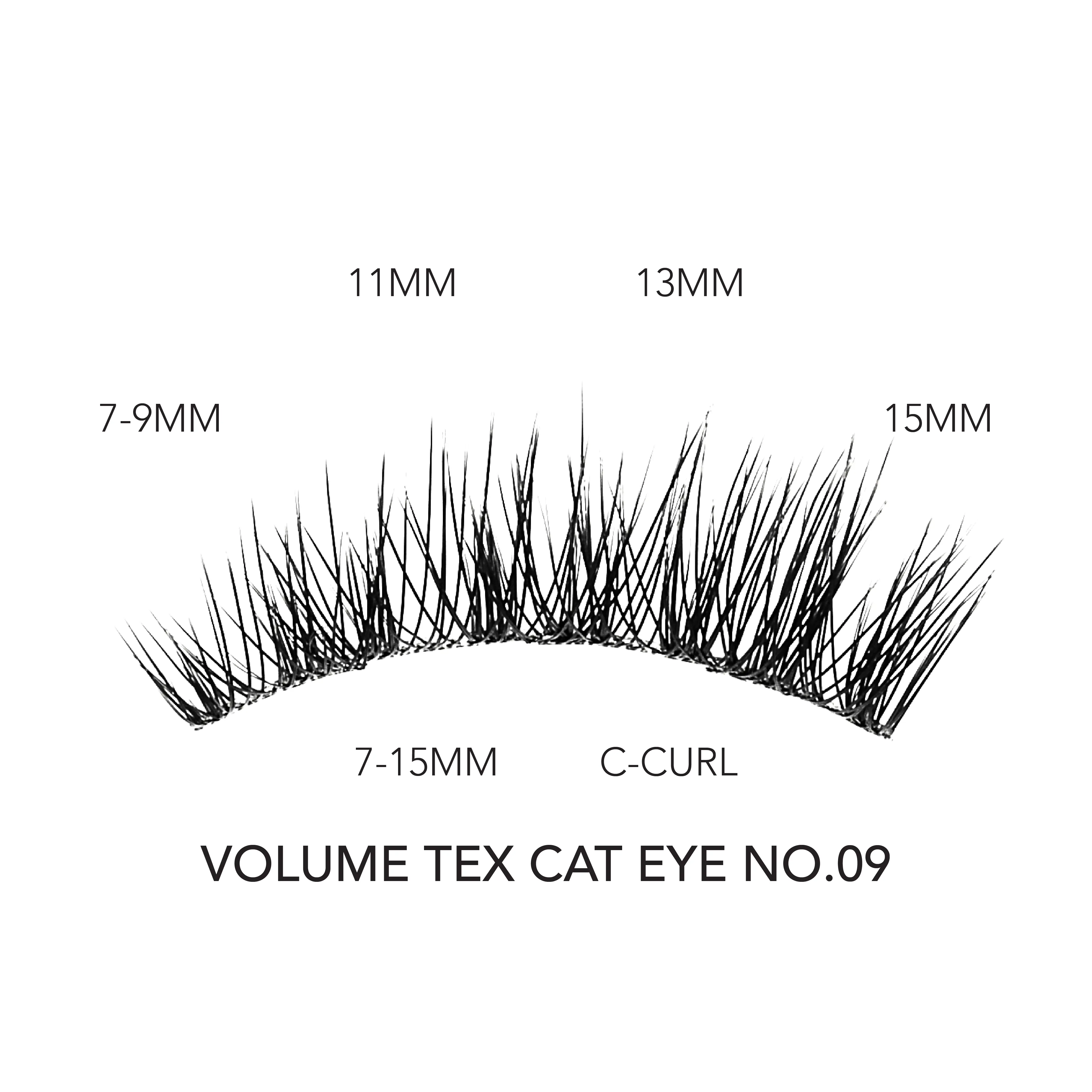 ·Volume Textured Cat Eye No. 09 – Crafted by our expert Lash Artists, this lash extension gives you a bold, textured look with a tapered cat-eye finish for an elongated effect; these SoftWear eyelash clusters are easy to apply, 30% lighter than our ProWear styles, reusable, and seamless