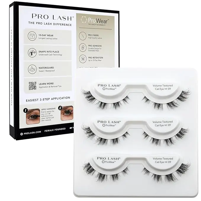 ·10+ Day Wear – ProWear cluster lashes are built to last—up to 10 days of wear or more; sweatproof and waterproof, our patent-pending adhesive system starts with our ProLock Adhesive (not included) that bonds to our pre-applied self adhesive eyelashes when crimped together