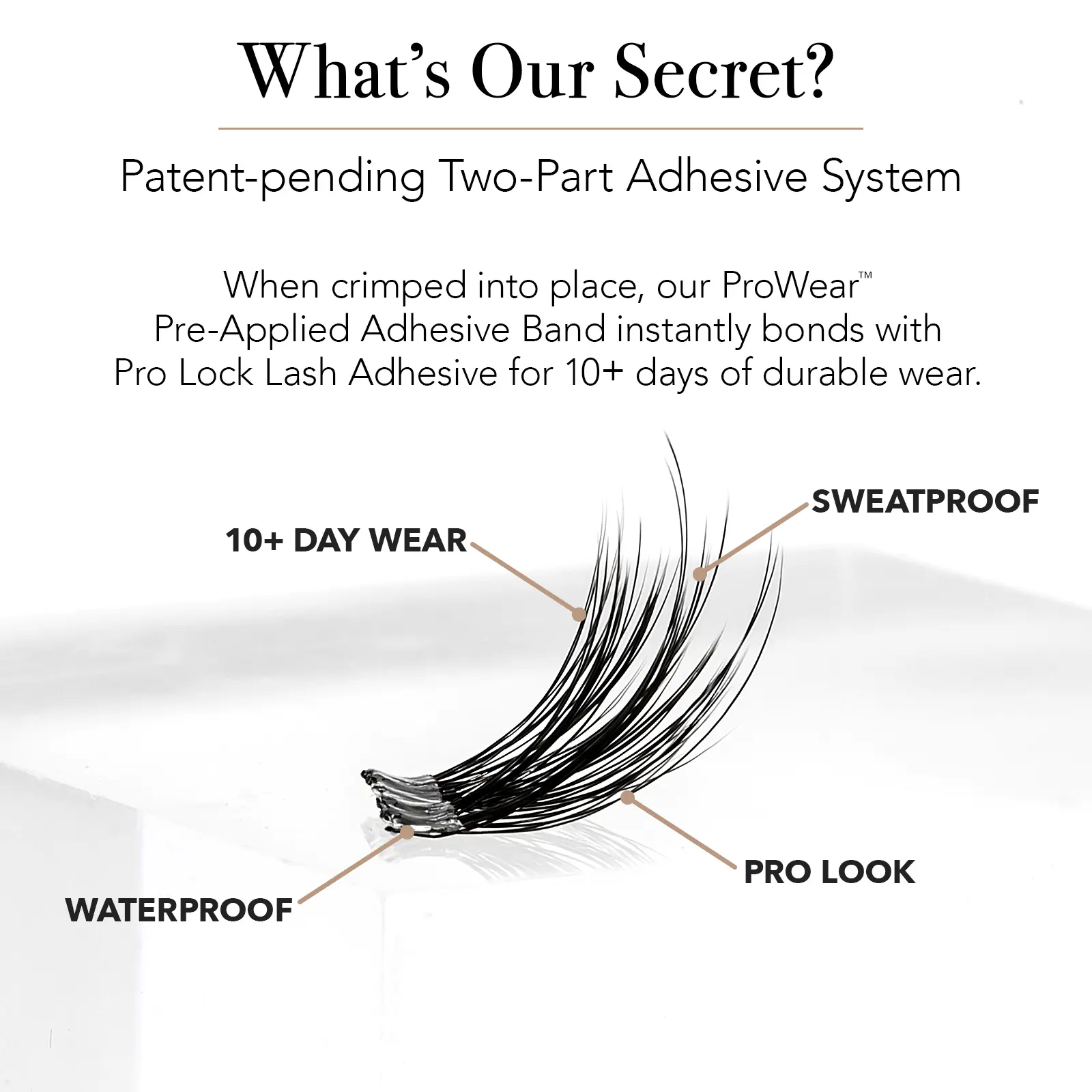 ·Industry-Leading 10+ Day Wear – ProWear cluster lashes are built to last—up to 10 days of wear or more; sweatproof and waterproof, our patent-pending adhesive system starts with our ProLock Adhesive (not included) that bonds to our pre-applied self adhesive eyelashes when crimped together
