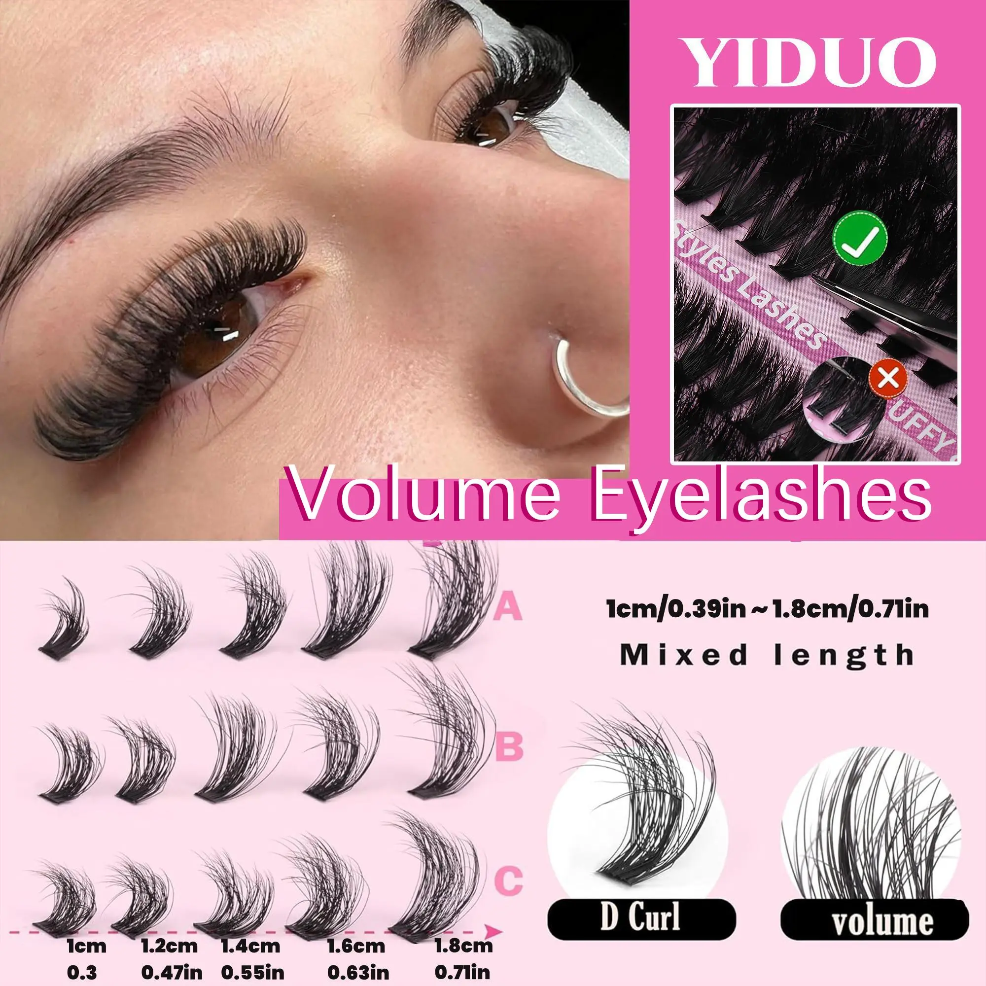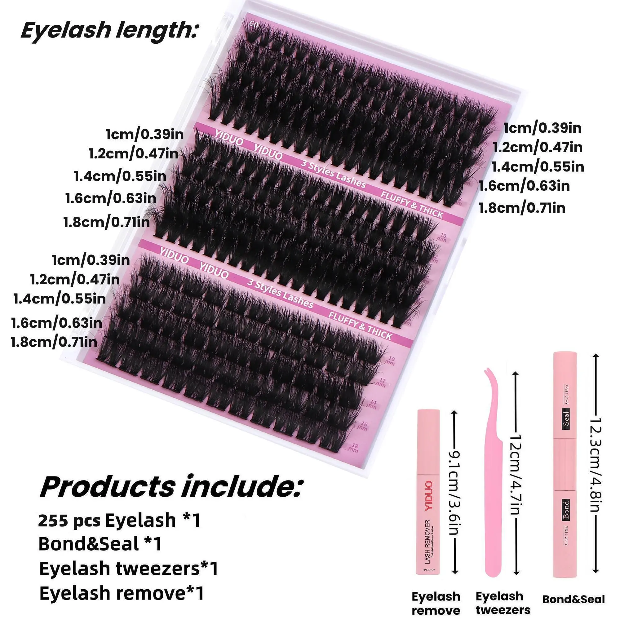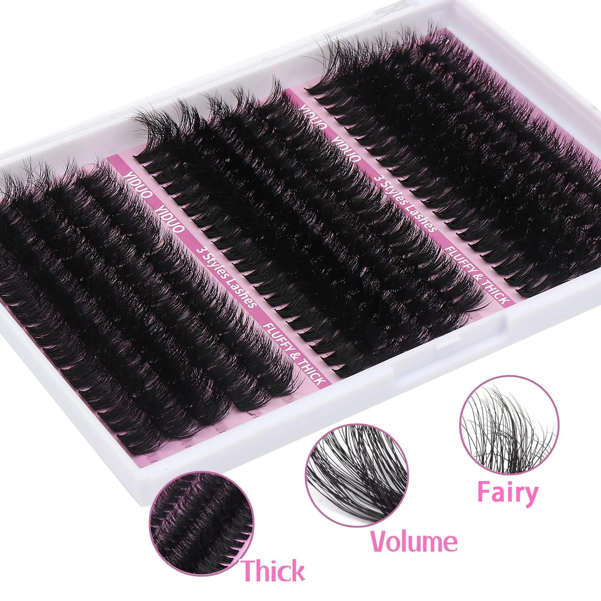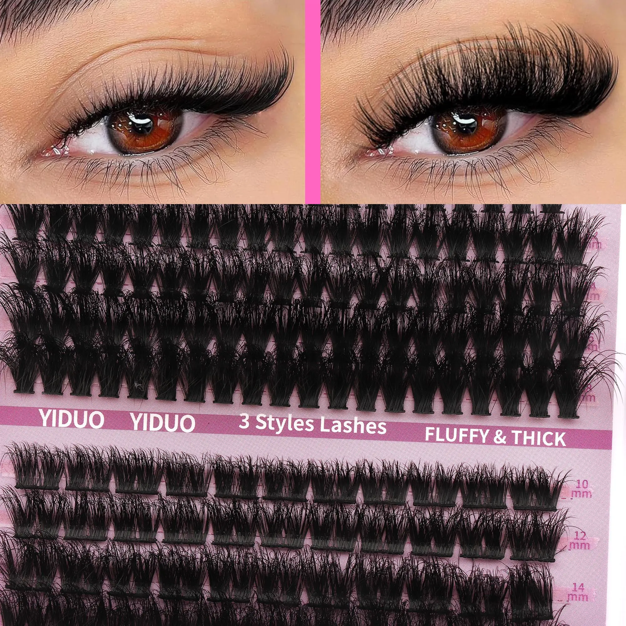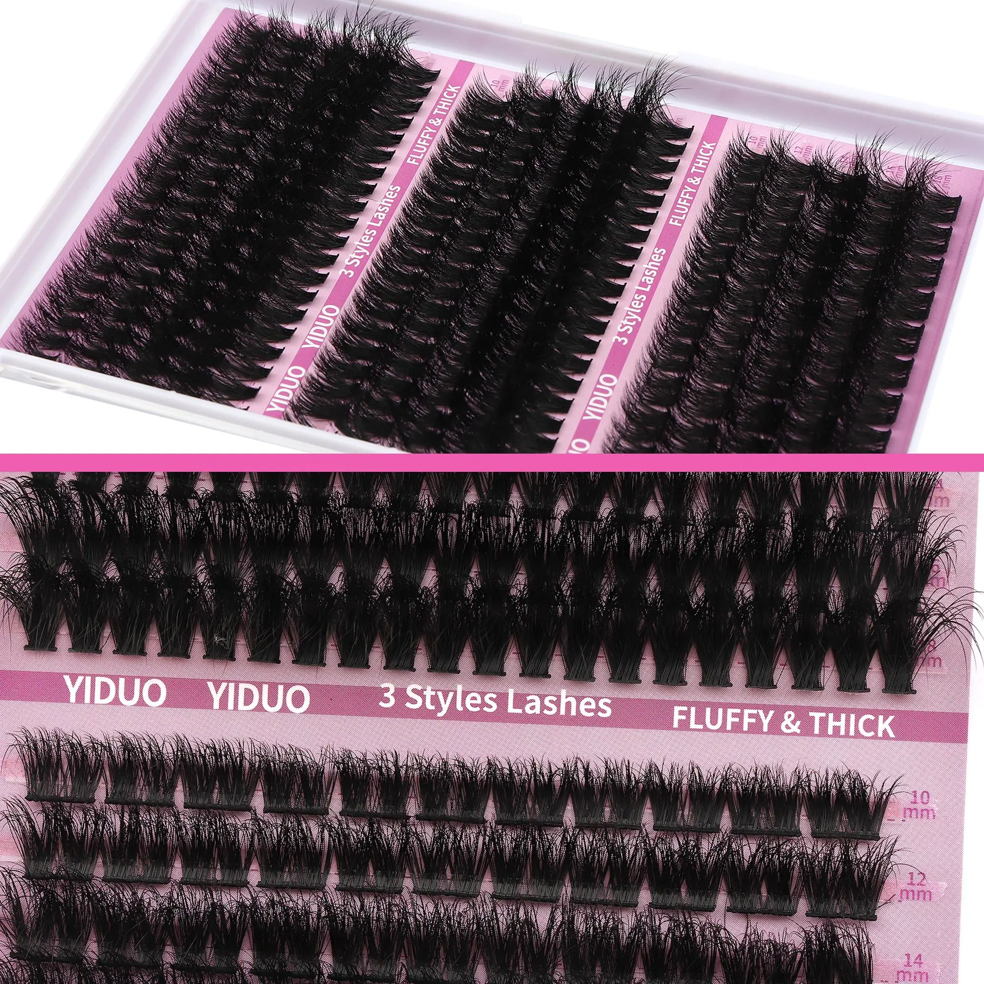 I love these clusters. Very soft & fluffy. HIGHLY RECOMMEND! This was my first time doing them on myself & they came out gorgeous. I also, wear glasses and used the very bottom section “Fluffy volume” 2- 18mm, 2-14mm, 1-12 per eyelid.. I believe this pack will last 2-3months depending on your glue