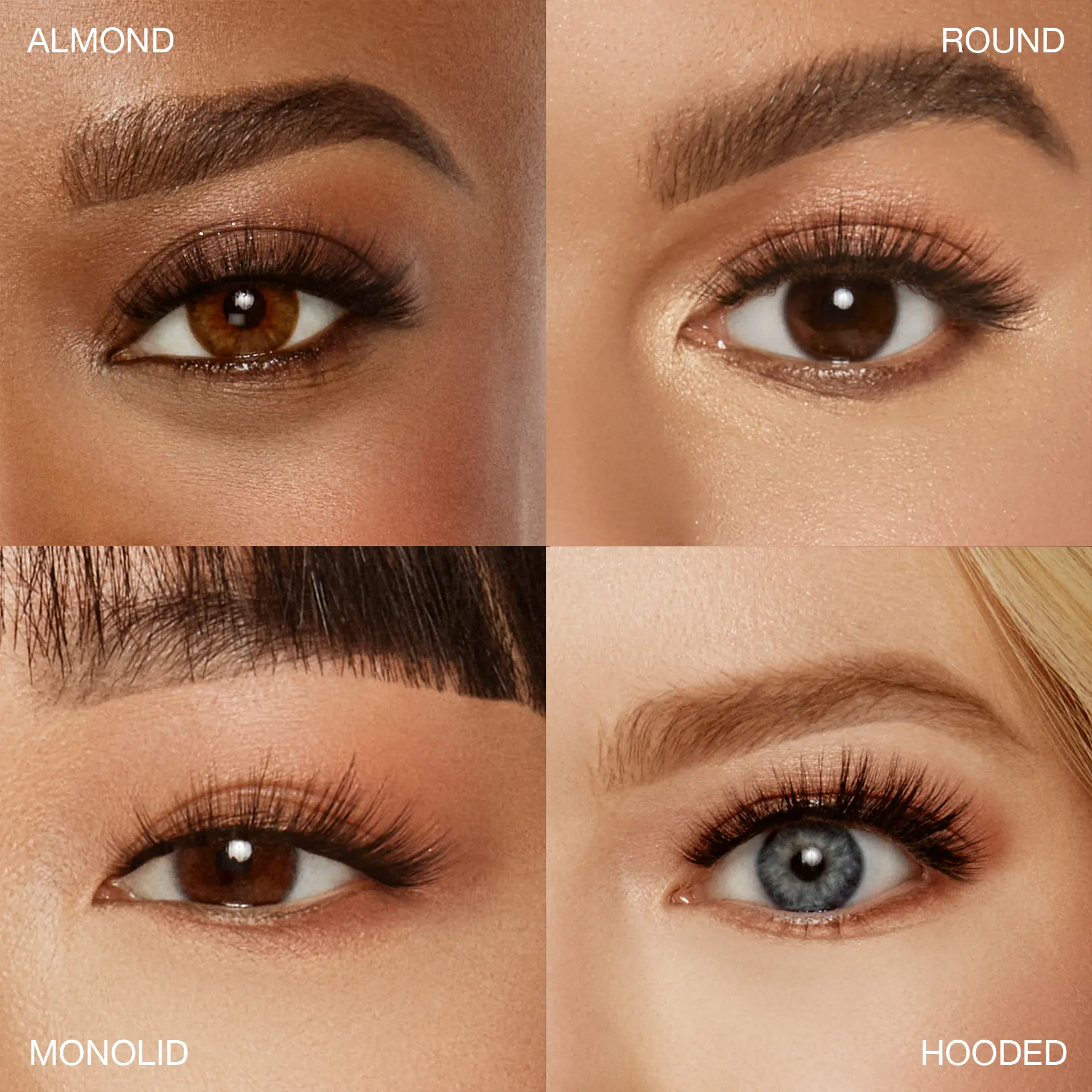 Innocent but guilty of flirtation. Rounded in shape, short in length and hitting the sweet spot in volume. Clustered, cropped & curled, this open-eye doll lash is perfect for light-hearted, toying around. Medium volume, short length; Rounded silhouette concentrates longer lengths in the middle for a striking open-eye effect