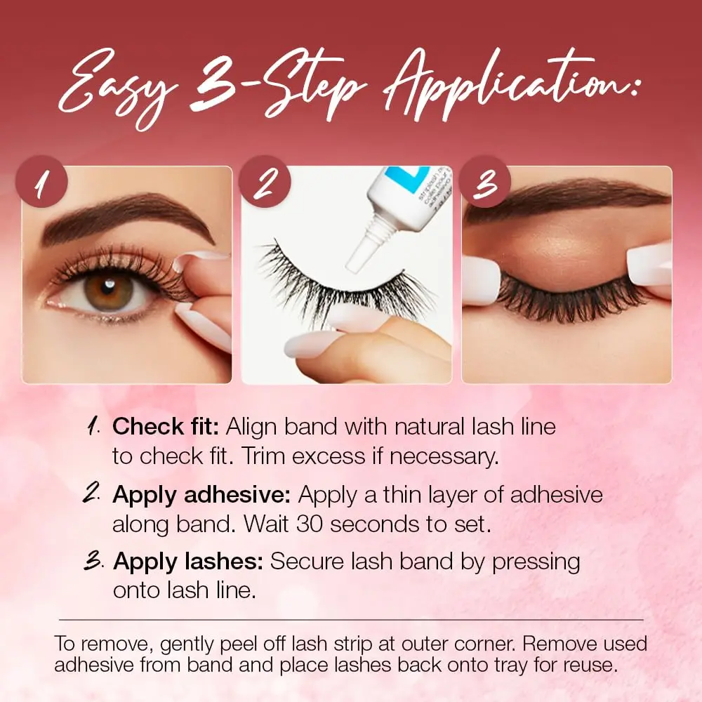I love these lashes! They are fluffy the adhesive strip it’s to wide. Very comfortable to wear.