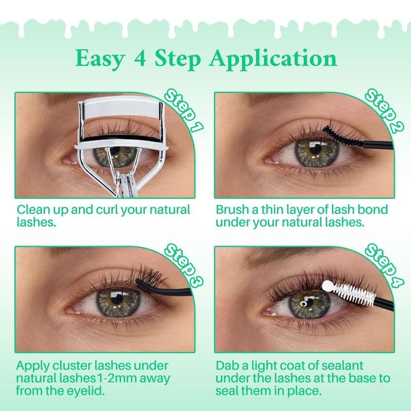 Love this lash bundle! The clusters are easy to grab from the case, and the bond goes on smooth and dries fast. Super easy to apply, and they lasted me a full 5 days. The sealer gives a clean finish—looks just like salon lashes. Highly recommend!