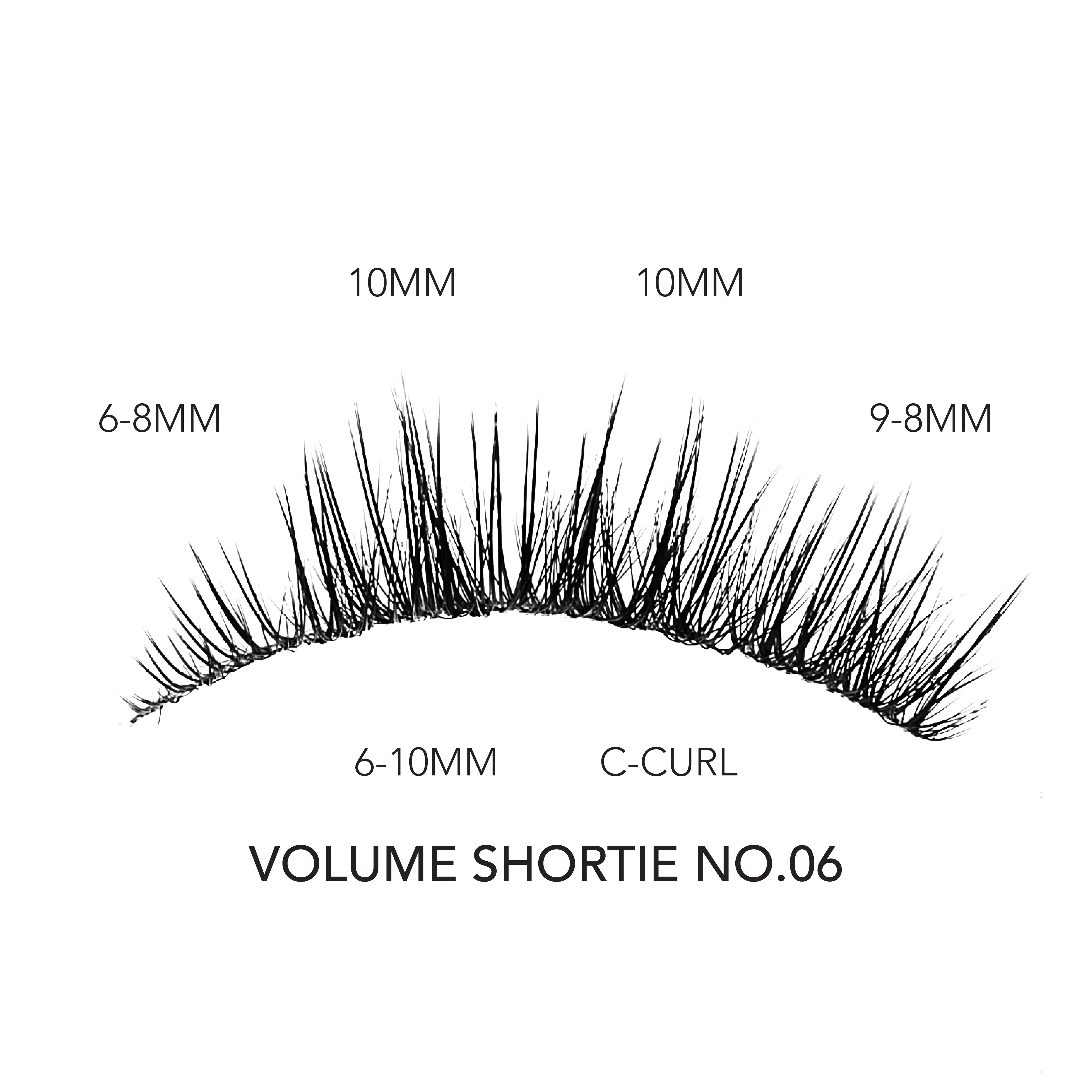 ·Volume Shorties No. 06 – Crafted by our expert Lash Artists, this lash extension gives you a bold, voluminous look with a 2mm shorter length for a perfect fit on any eye shape; available in black and cocoa
