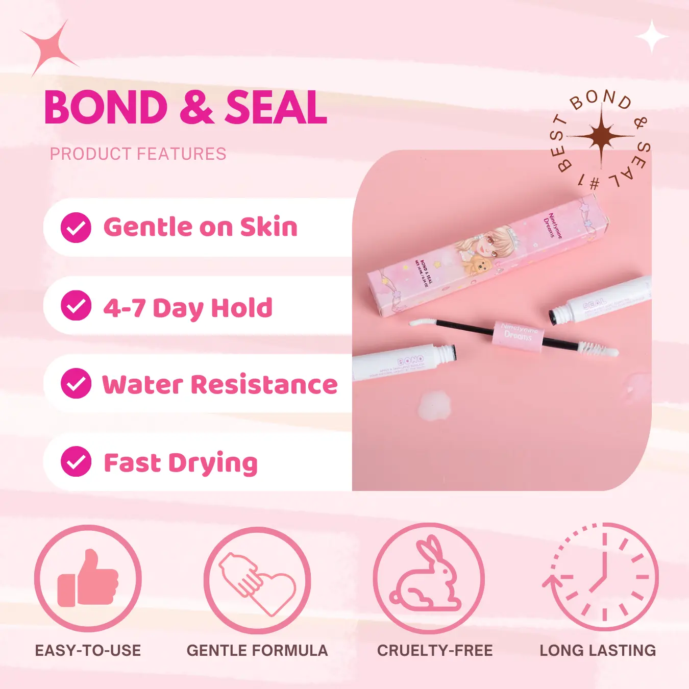 good bond and seal— but truthfully this is the first one I’ve used so I can’t compare it to any other anyways. but do be careful when you go overboard, it does leave a little white residue and almost impossible to remove without taking the lashes off completely. but other than that, pretty easy!
