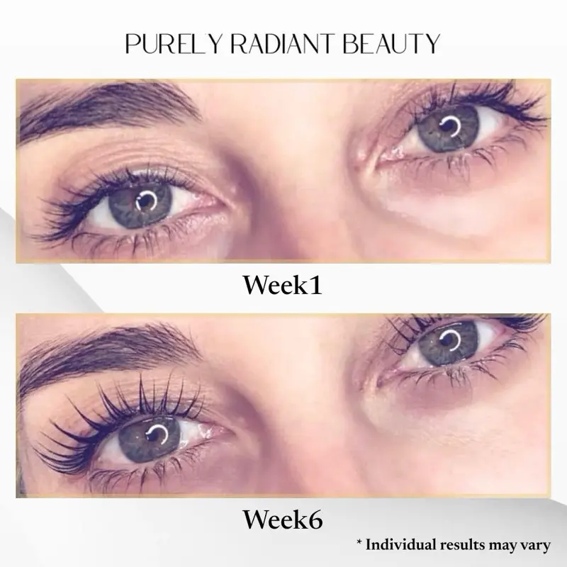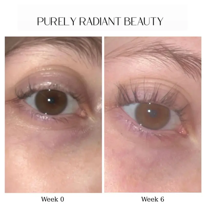 I used the serum in my lashes and eyebrows for about a month, I noticed my eyelash gaps were gone and my eyebrows were getting thicker. the first picture is before I used it, 2nd picture is a week after first use, and the last is a month.