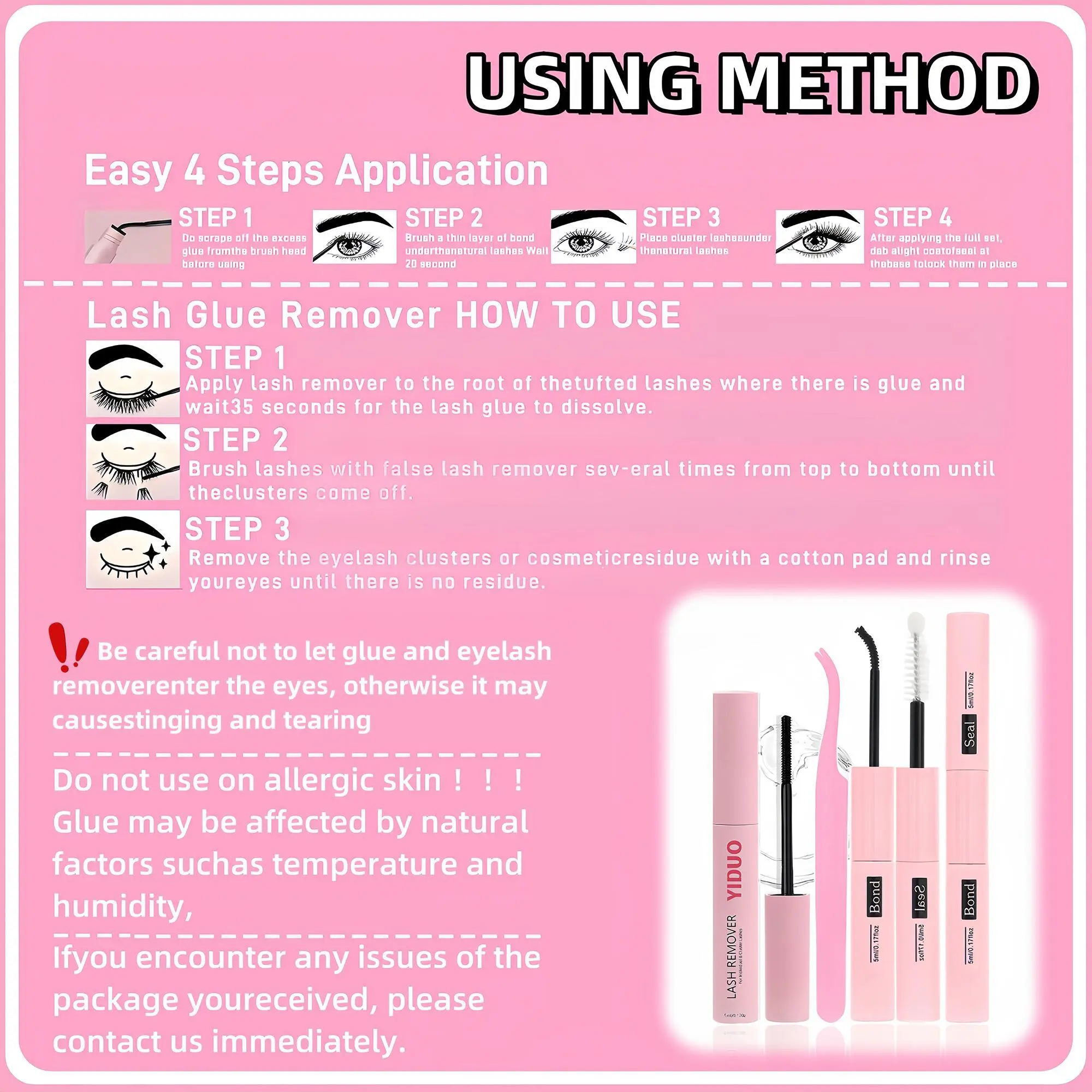 everything came exactly as pictured! Lashes were super easy to apply and this was my first time doing lash clusters ever! So many options to choose from my eyes not gon be bald for a while😂😂! I’m gonna update this and say how long it lasted for me.
