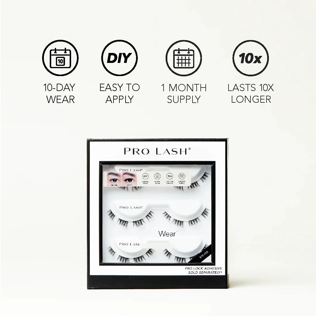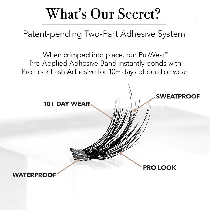 ·10+ Day Wear – ProWear cluster lashes are built to last—up to 10 days of wear or more; sweatproof and waterproof, our patent-pending adhesive system starts with our ProLock Adhesive (not included) that bonds to our pre-applied self adhesive eyelashes when crimped together