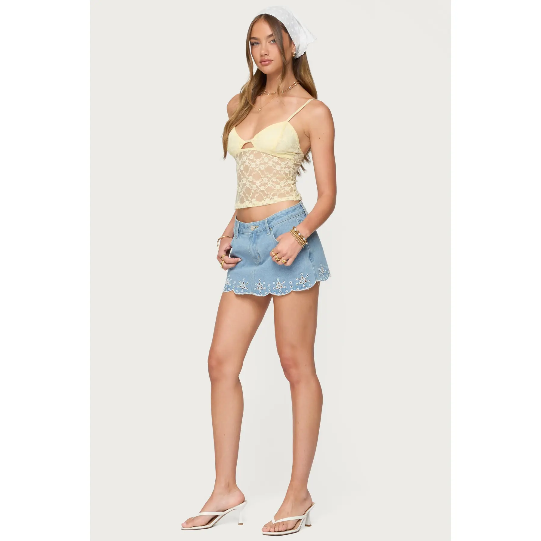·Eyelet scalloped hem