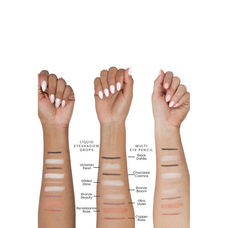 Keep the spotlight on you with our NEW Radiant BloomEyeshadowDrops! Our weightless, liquid-to-powder eyeshadows apply and blendseamlessly for quick and easy eye-looks that last all day, no creasingand no fallout! The neutral shades are buildable and can be wornalone, layered to create fun eye palettes and paired with our MultiEye Pencils. These eyeshadows elevate the everydaymakeup look.Our Victorian Pearlshadeis a platinum champagne with golden shimmer!