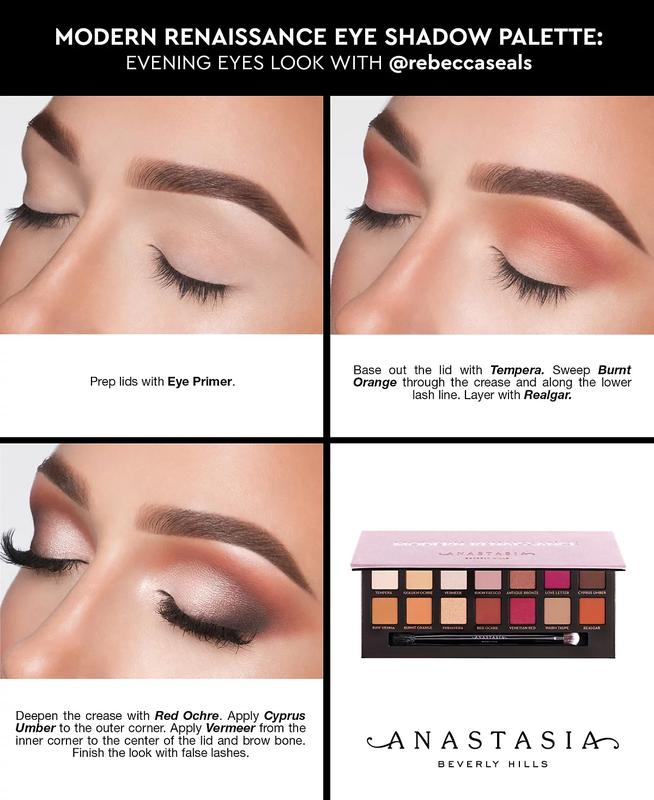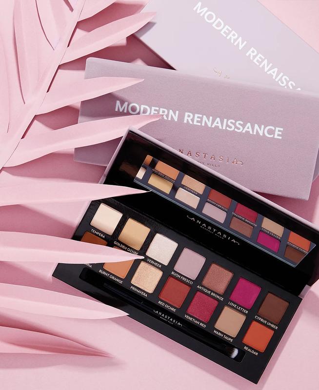 Anastasia Beverly Hills Modern Renaissance Eyeshadow Palette is an essential eyeshadow palette featuring 14 full-pigment shades ranging from neutral to berry-red eyeshadow hues in matte and metallic finishes. Inspired by the resins and paints of Renaissance art, this professional-quality eye makeup collection features an easy-to-blend formula in a versatile color range for creating endless eyeshadow looks, from subtle to dramatic pops of color. Included in the Modern Renaissance Eyeshadow Palette is a dual-ended brush and large mirror housed inside travel-friendly packaging.