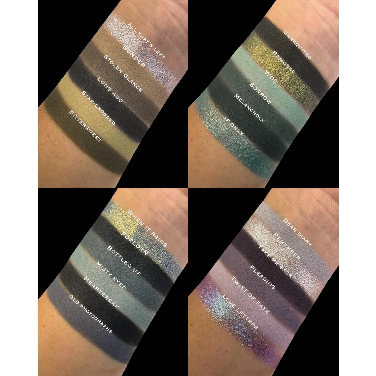 | Ingredients | ALL THAT'S LEFT,STAR-CROSSED,IF ONLY,MISTY EYED,REMEMBER,SONDER,BITTERSWEET,WOE,BOTTLED UP,STOLEN GLANCE,UNREQUITED,SORROW,FORLORN,LONG AGO,MELANCHOLY,HEARTBREAK) TALC,MICA,CALCIUM SODIUM BOROSILICATE,CAPRYLIC/CAPRIC TRIGLYCERIDE,SILICA,DIMETHICONE,ETHYLHEXYL PALMITATE,POLYISOBUTENE,MAGNESIUM STEARATE,TRIETHOXYCAPRYLYLSILANE,BIS-DIGLYCERYL POLYACYLADIPATE-2,CALCIUM ALUMINUM BOROSILICATE,TRIDECYL TRIMELLITATE,SYNTHETIC FLUORPHLOGOPITE,PHENOXYETHANOL,DIMETHICONE/VINYL DIMETHICONE CROSSPOLYMER,ALUMINUM STARCH OCTENYLSUCCINATE,CAPRYLYL GLYCOL,TOCOPHERYL ACETATE,1,2-HEXANEDIOL,TIN OXIDE,ETHYLHEXYLGLYCERIN,POLYETHYLENE,MICROCRYSTALLINE WAX,PARAFFIN,METHICONE,TRIMETHYLSILOXYSILICATE,MAY CONTAIN(+/-):TITANIUM DIOXIDE(CI 77891),IRON OXIDES(CI 77499,Cl 77492,Cl 77491),D&C BLACK 2(CI 77266),FD & C BLUE 1 AL LAKE(CI 42090),FD & C YELLOW 5 AL LAKE(CI 19140),FERRIC AMMONIUM FERROCYANIDE(CI 77510),CHROMIUM OXIDE GREENS(CI 77288). FACE PIGMENT INGREDIENT: TWIST OF FATE,DEAR DIARY,PLEADING,OLD PHOTOGRAPHS,TAKE ME BACK,REMORSE,WHEN IT RAINS,LOVE LETTERS) TALC,BIS-DIGLYCERYL POLYACYLADIPATE-2,SYNTHETIC FLUORPHLOGOPITE,PHENOXYETHANOL. CALCIUM SODIUM BOROSILICATE,TRIMETHYLSILOXYSILICATE. MAY CONTAIN(+/-):TITANIUM DIOXIDE(CI 77891),CI 77491),ULTRAMARINES(CI 77007),D & C RED 27 AL LAKE(CI 45410),D&C BLACK 2 (CI 77266),D & C RED 7 CA LAKE(CI 15850),FERRIC AMMONIUM FERROCYANIDE(CI 77510). NOT FOR USE AROUND THE EYES. WARNING: FOR EXTERNAL USE ONLY.DISCONTINUE |
