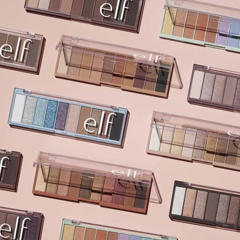 Get inspired with our 10-color eyeshadow palette, perfect for shading, highlighting, defining, and making your eyes the prize. It features a versatile range of ultra-pigmented matte and shimmer shades that invite you to play around and create a range of eyeshadow looks—from subtle daytime statements to bold, multidimensional vibes. The blendable formula applies silky smooth and blends with ease, delivering intense color payoff when using with your favorite e.l.f. eyeshadow brush.