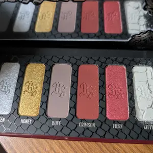 Β·Introducing Fatally yours 2, This palette takes inspiration from Bailey’s signature dark, mysterious aesthetic and fearless style. Featuring 8 richly pigmented shades that range from smoky cool-toned greysβ€”perfect for creating sultry looksβ€”combined with intense reds that add a pop of drama. Frosted shades shimmer like chrome, offering eye-catching metallic finishes to elevate your looks. Perfect for those who embrace the dark and the daring.- Paraben free- Gluten free- Talc free- Not vegan. Shade Crimson contain carmine