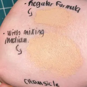 Creamy, easy to blend. Dries down matte. Can add mixing medium to thin it out more. This formula does not move once dried. Full coverage. A little goes a long way. Can mix to your desired shade. Comes with brush/spatula. No added fragrance. If anything, it smells like a sterile environment. 10/10.